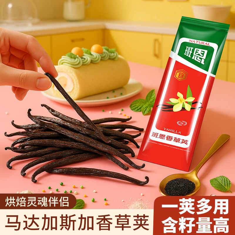 📚 香草荚马达加斯加班恩天然豆荚兰烘焙香草夹条籽食用香草精膏专用