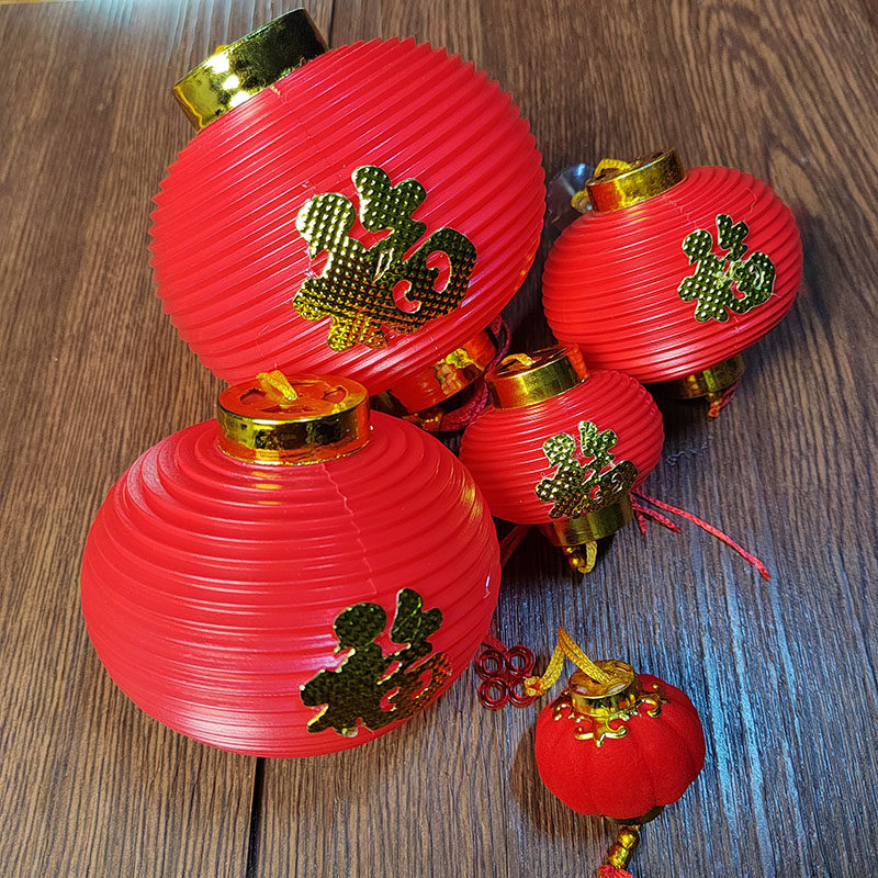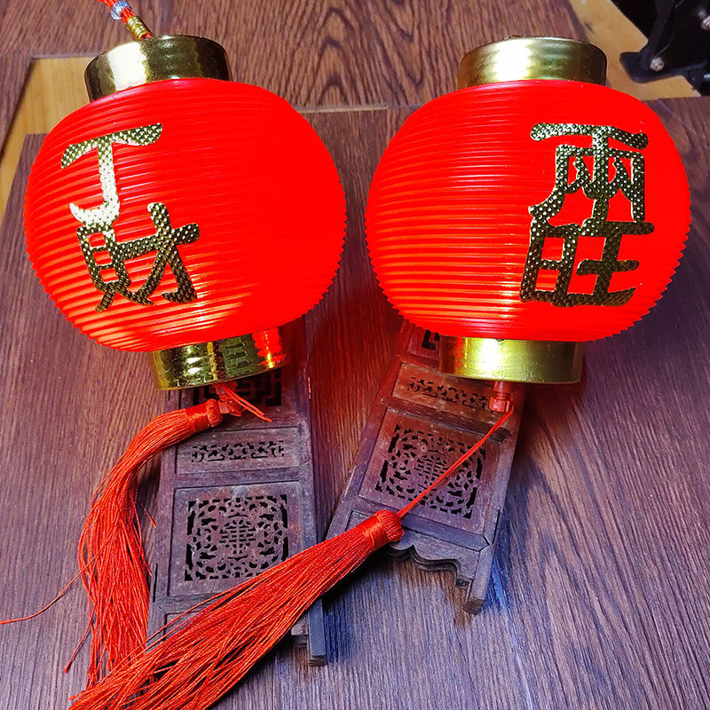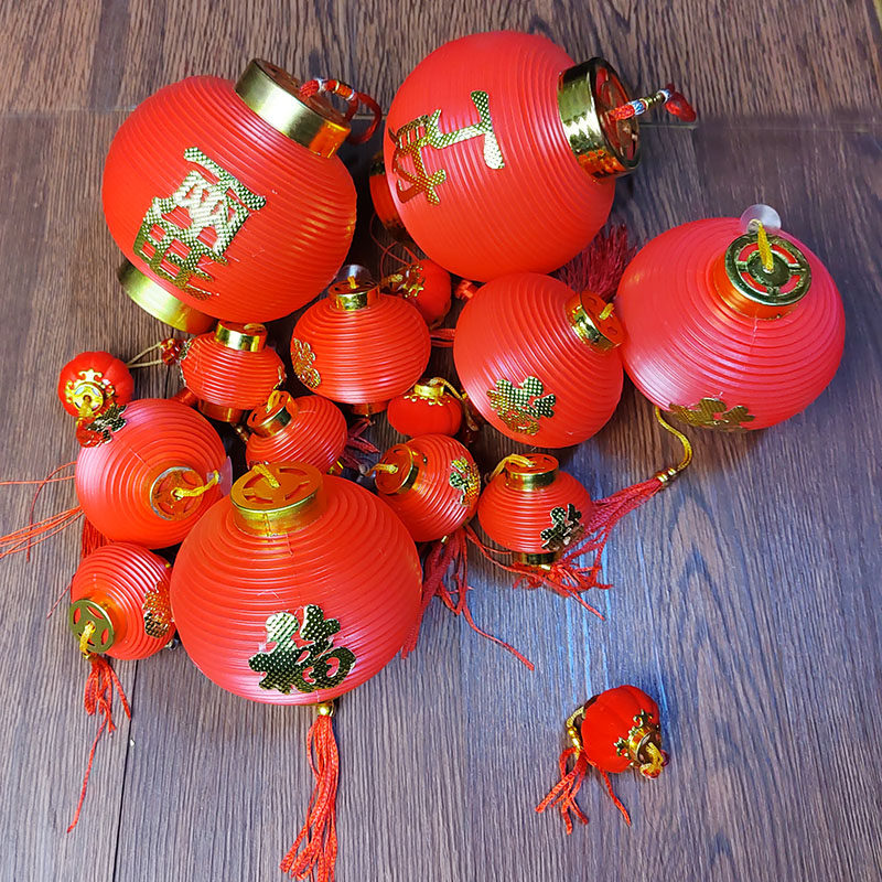 📚 塑料灯笼盆景挂饰春节节庆装饰吹塑灯笼小红灯福字灯笼螺纹塑料灯