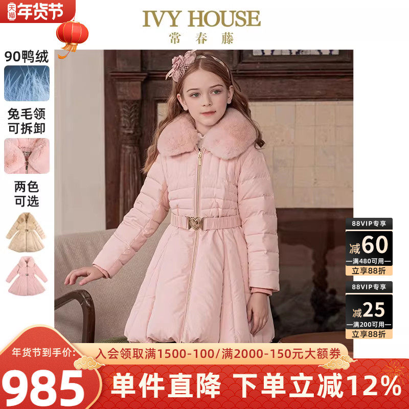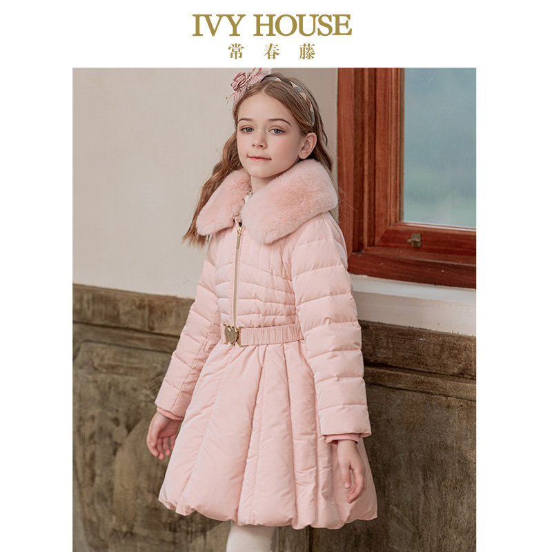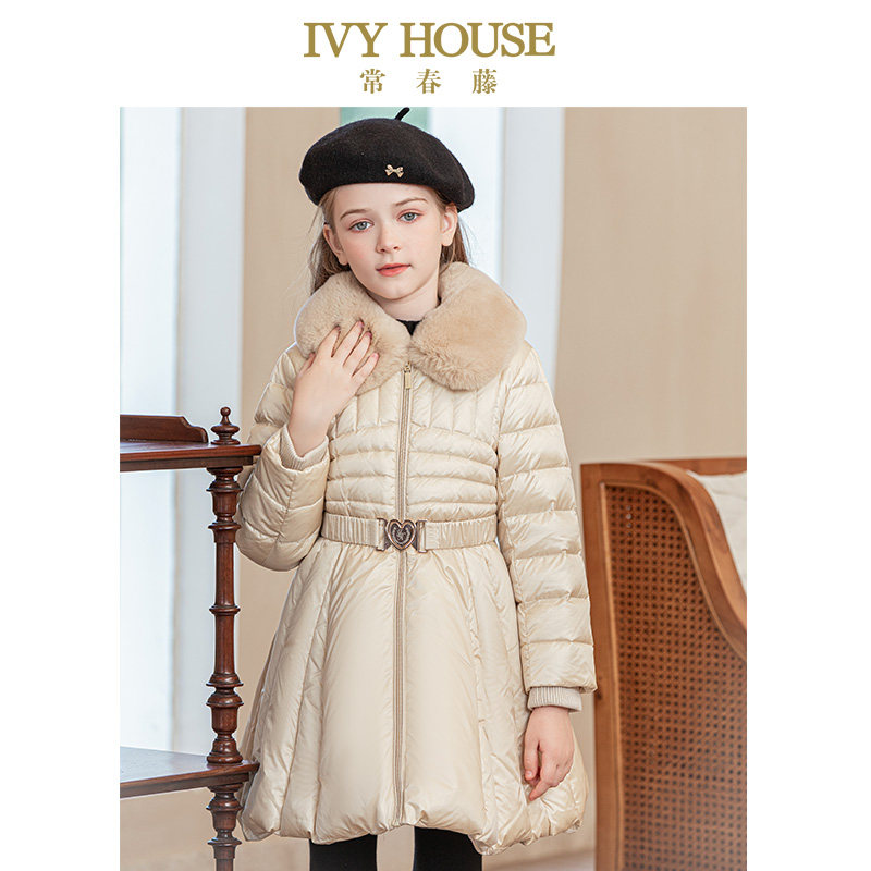 📚 IVY HOUSE常春藤童装女童羽绒服冬季款 大裙摆束腰毛领外套保暖