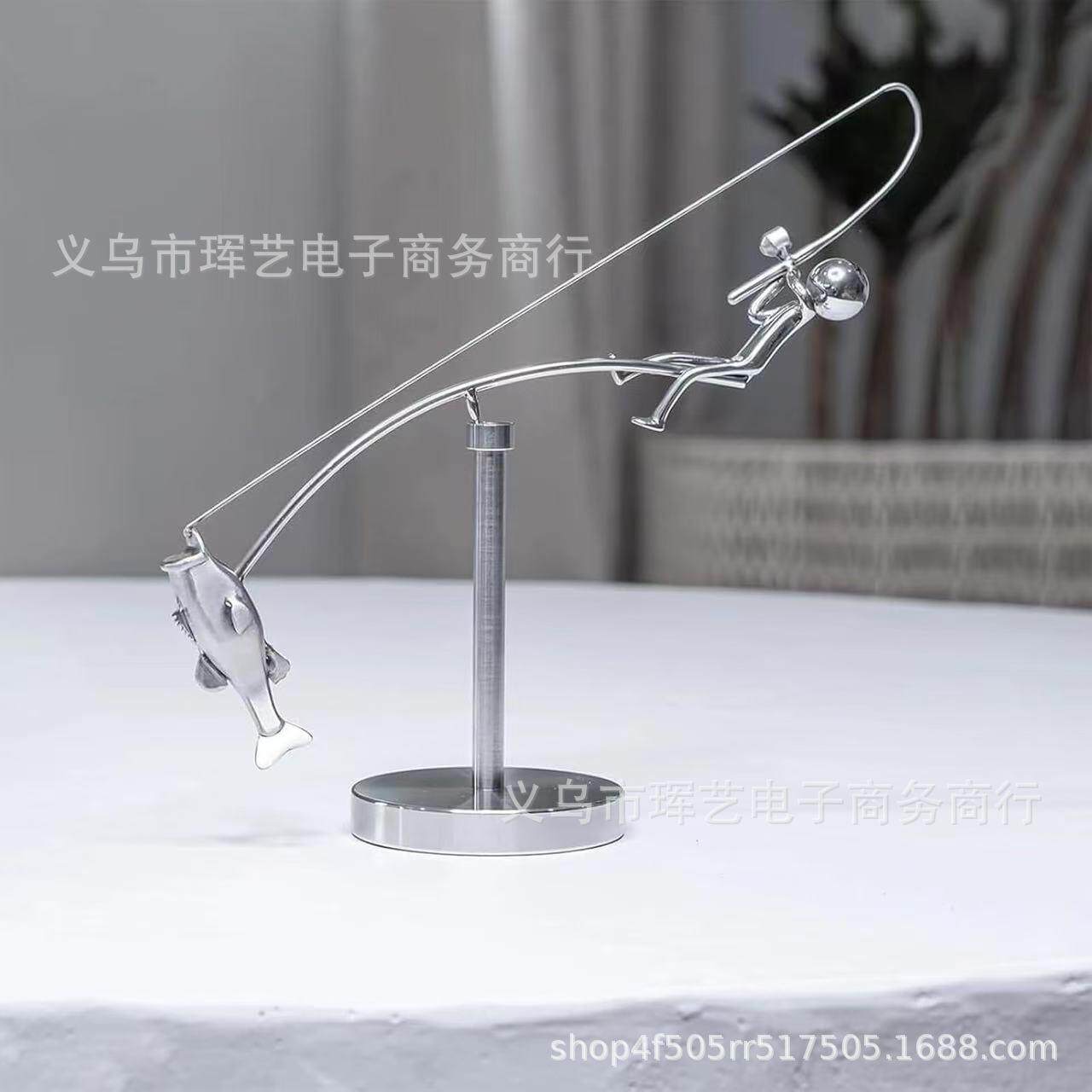 📚 跨境新品 The Fisherman Balancing Sculpture金属渔夫不倒翁钓鱼