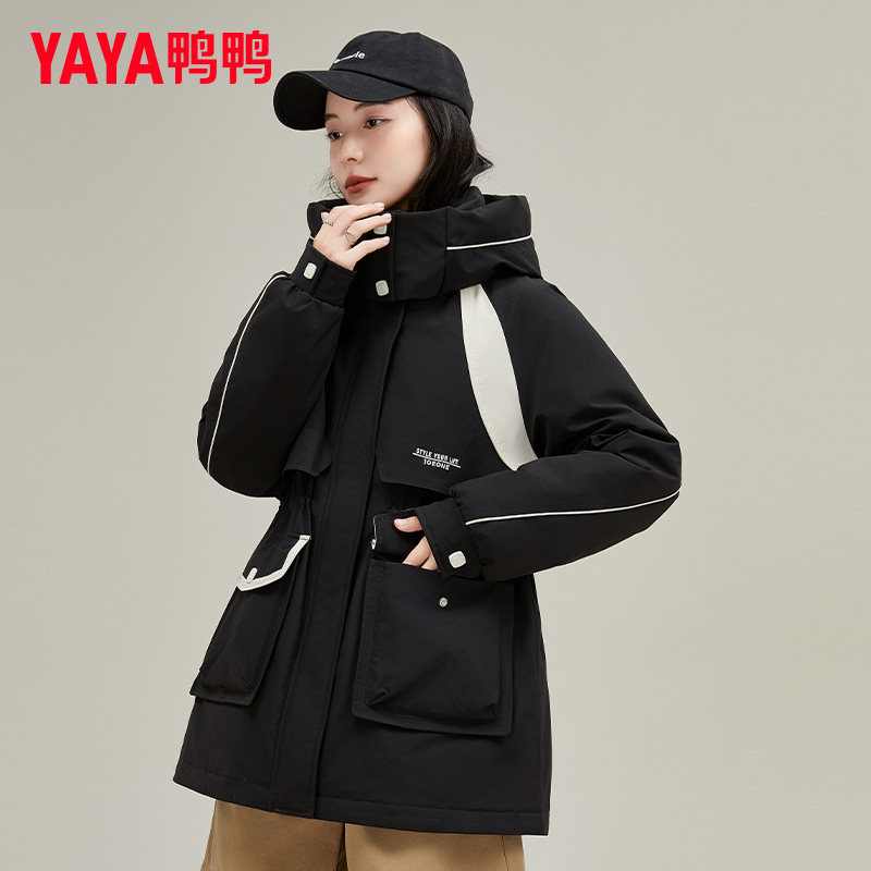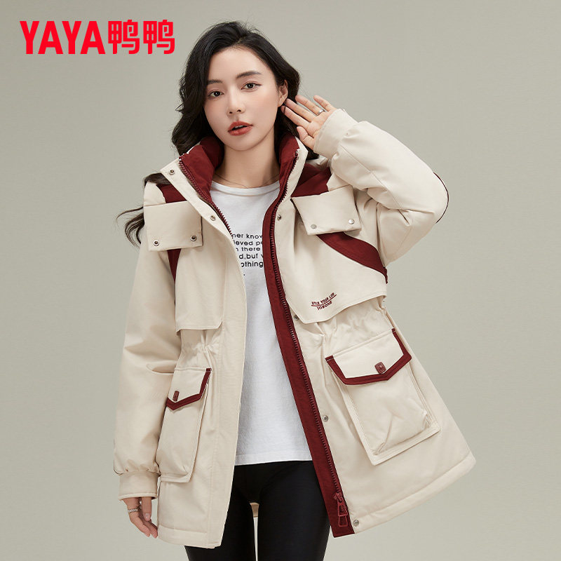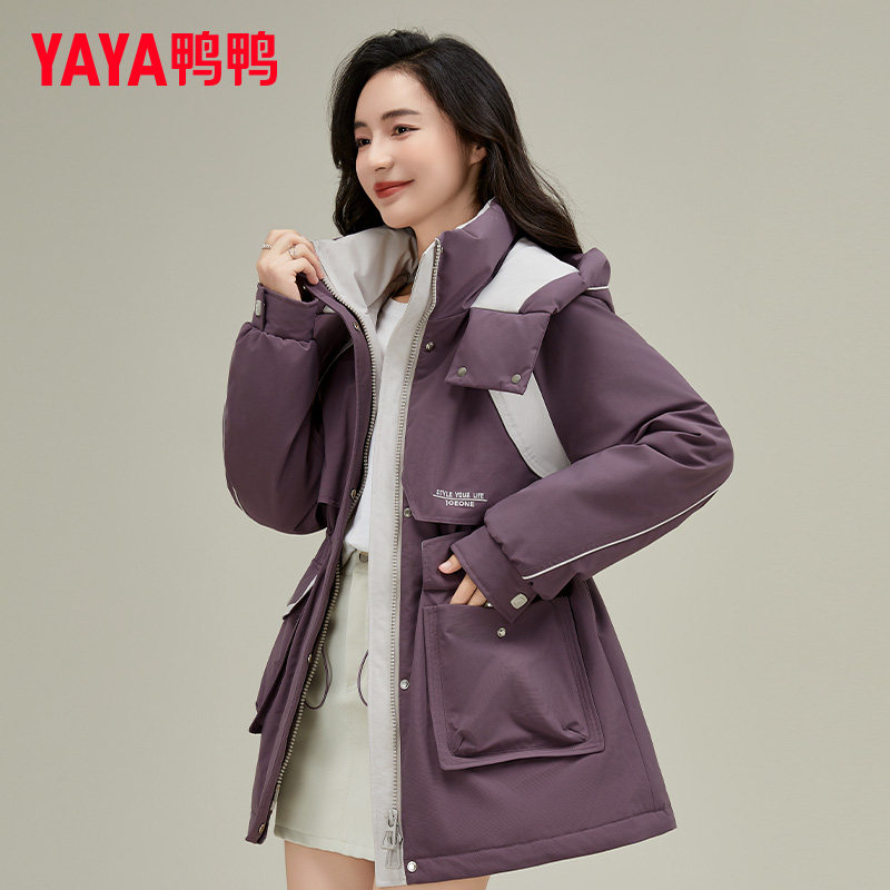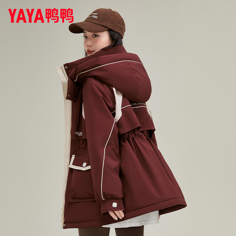 📚 鸭鸭中长款工装风衣外套女冬胖MM宽松休闲收腰显瘦羽绒服