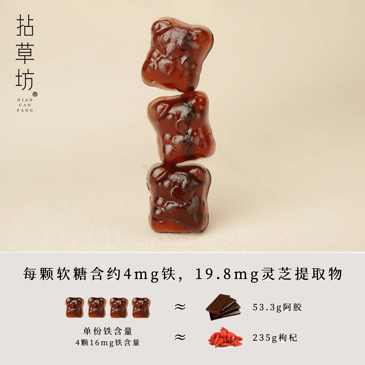 📚 拈草坊灵芝玫瑰维C软糖红枣熬夜经期养红元气铁元素女性好气色