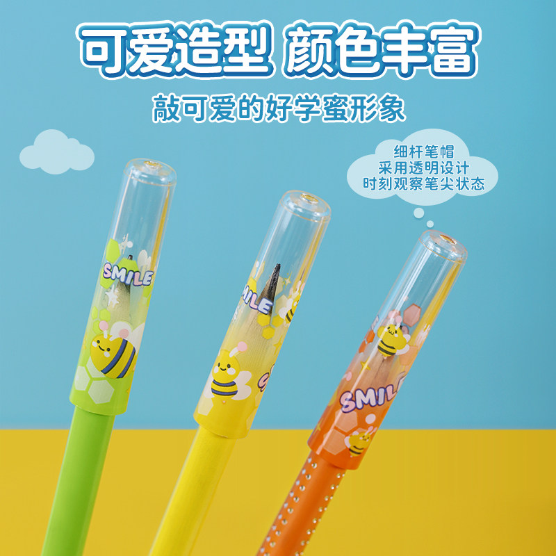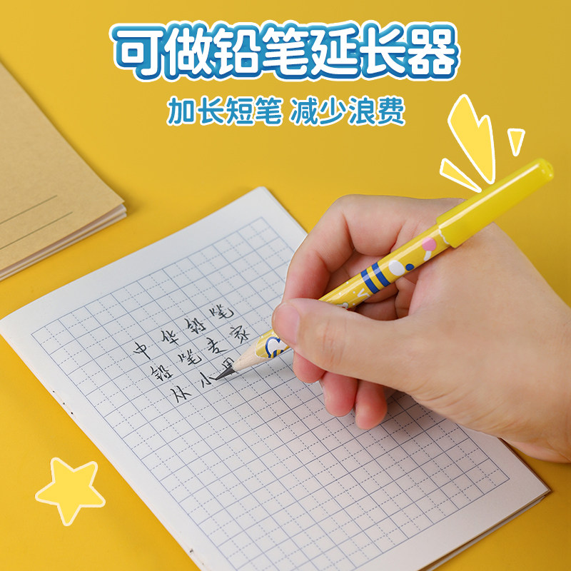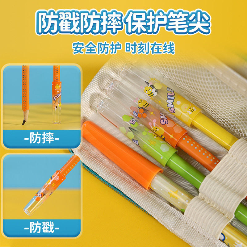📚 中华好学生系列卡通小蜜蜂铅笔笔帽小学生专用铅笔保护套笔盖护笔器铅笔延长器透明纯色细杆笔帽粗杆笔帽