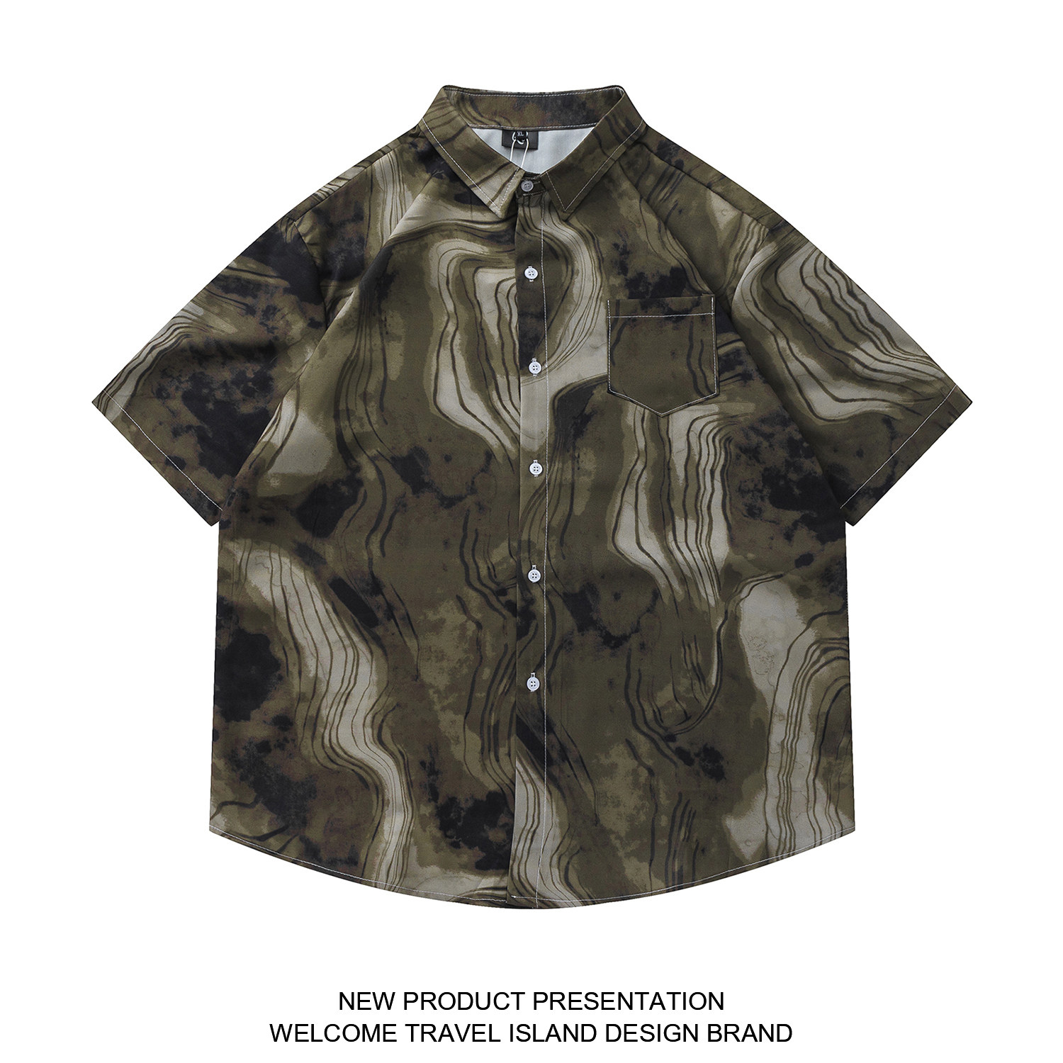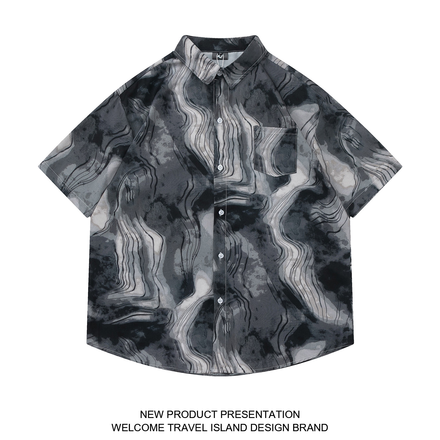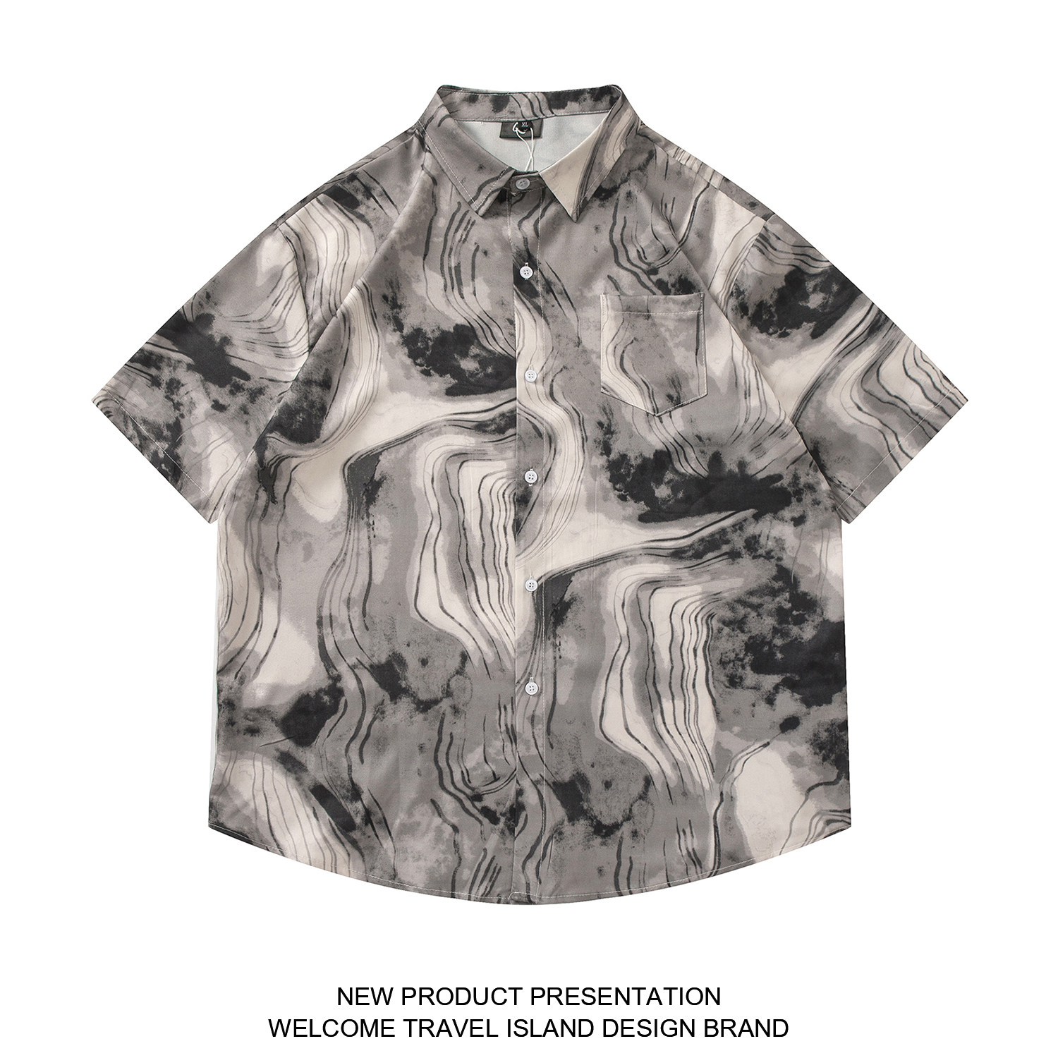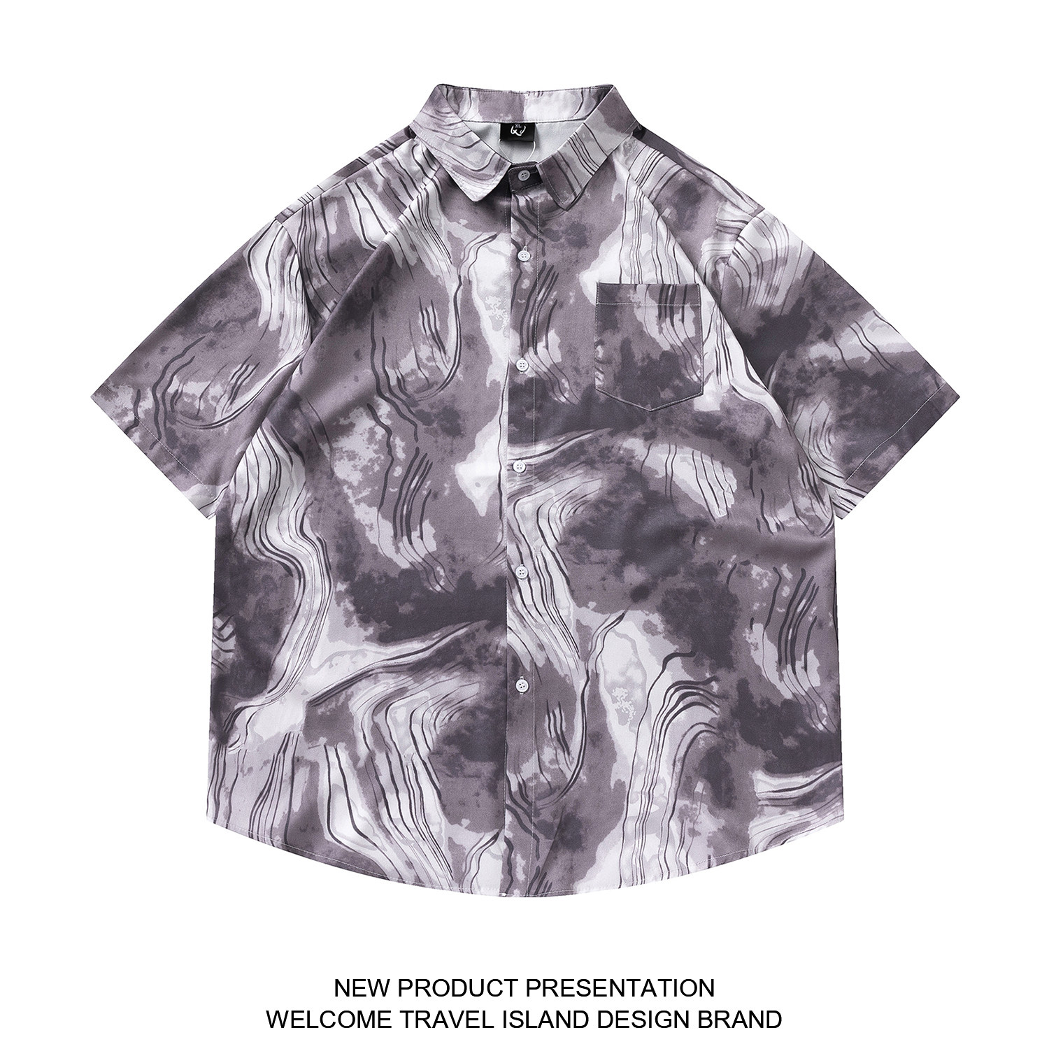 📚 TRAVEL ISLAND 逐渐沾染 潮牌个性创意红色水墨扎染印花短袖衬衫