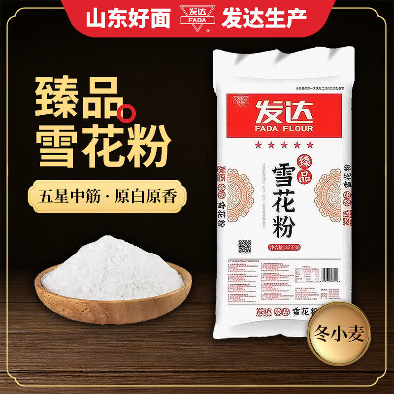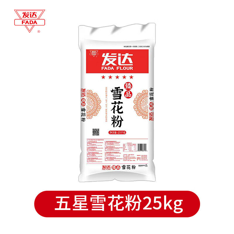 📚 发达面粉50斤五星臻品雪花粉中筋中式面粉家用大袋白面山东小麦粉