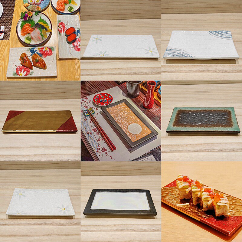 📚 日式创意陶瓷红金长方形平盘菜盘子寿司盘刺身烧鸟烤物日料餐具