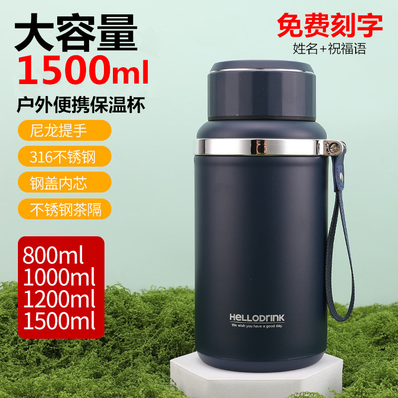 📚 短粗保温杯316不锈钢超大容量1500ml男士水杯学生女运动矮胖茶杯