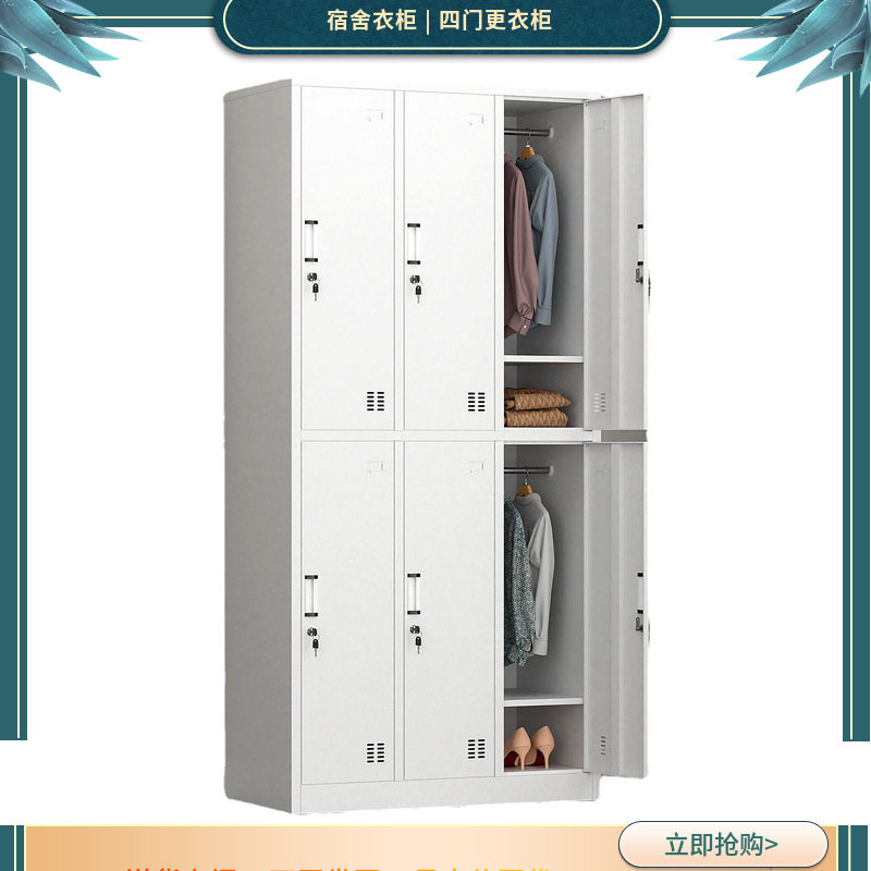 📚 更衣柜员工宿舍肆四门带锁工衣柜子铁皮柜4门更衣柜铁皮柜子钢柜