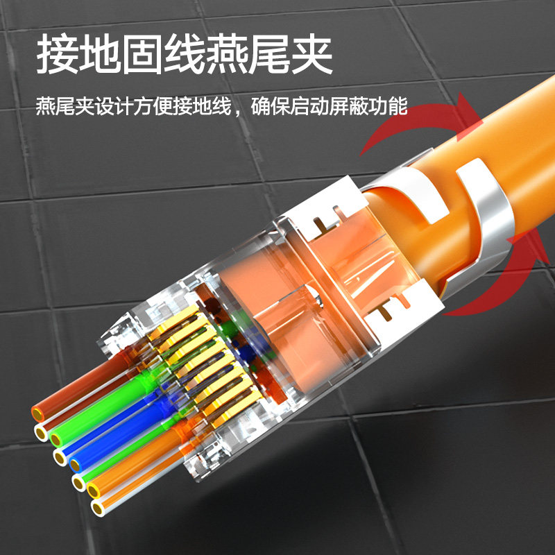 📚 沃迪特超七类穿孔式水晶头八类万兆通孔镀金CAT6A78屏蔽铜壳接头