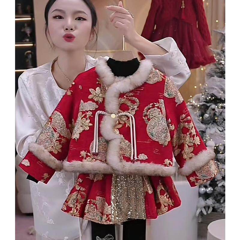 📚 女童冬季加厚唐装小女孩新中式过年套装儿童国风红色喜庆拜年服装