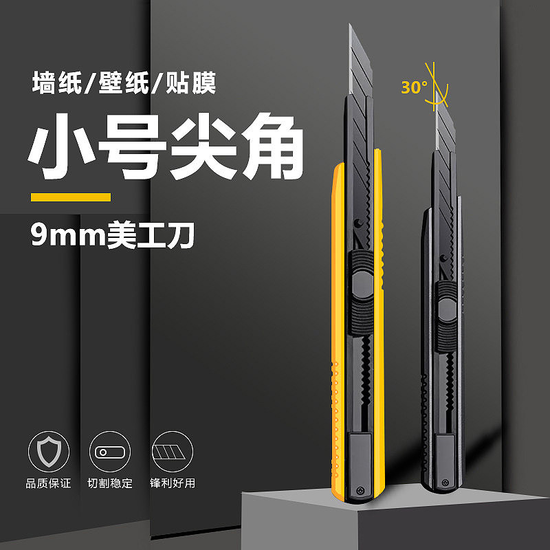 📚 小号9mm美工刀30°尖角全黑刃裁纸贴膜雕刻工具刀壁纸刀