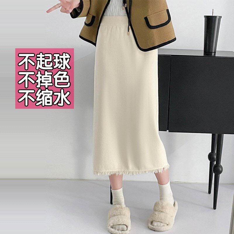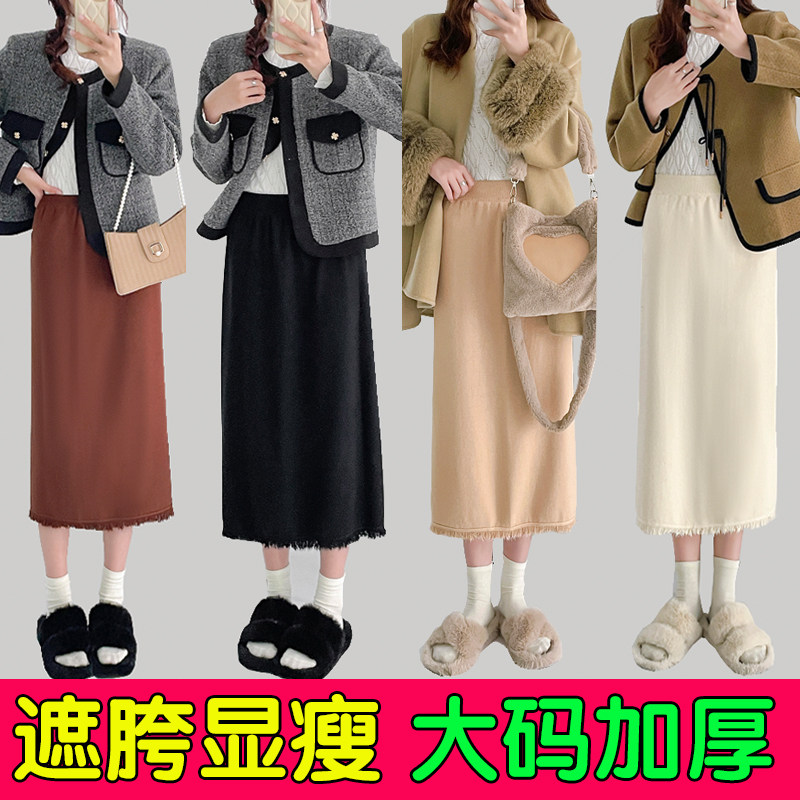 📚 大码流苏半身裙女开叉一步裙直筒裙针织包臀裙包裙长裙子胖mm秋冬