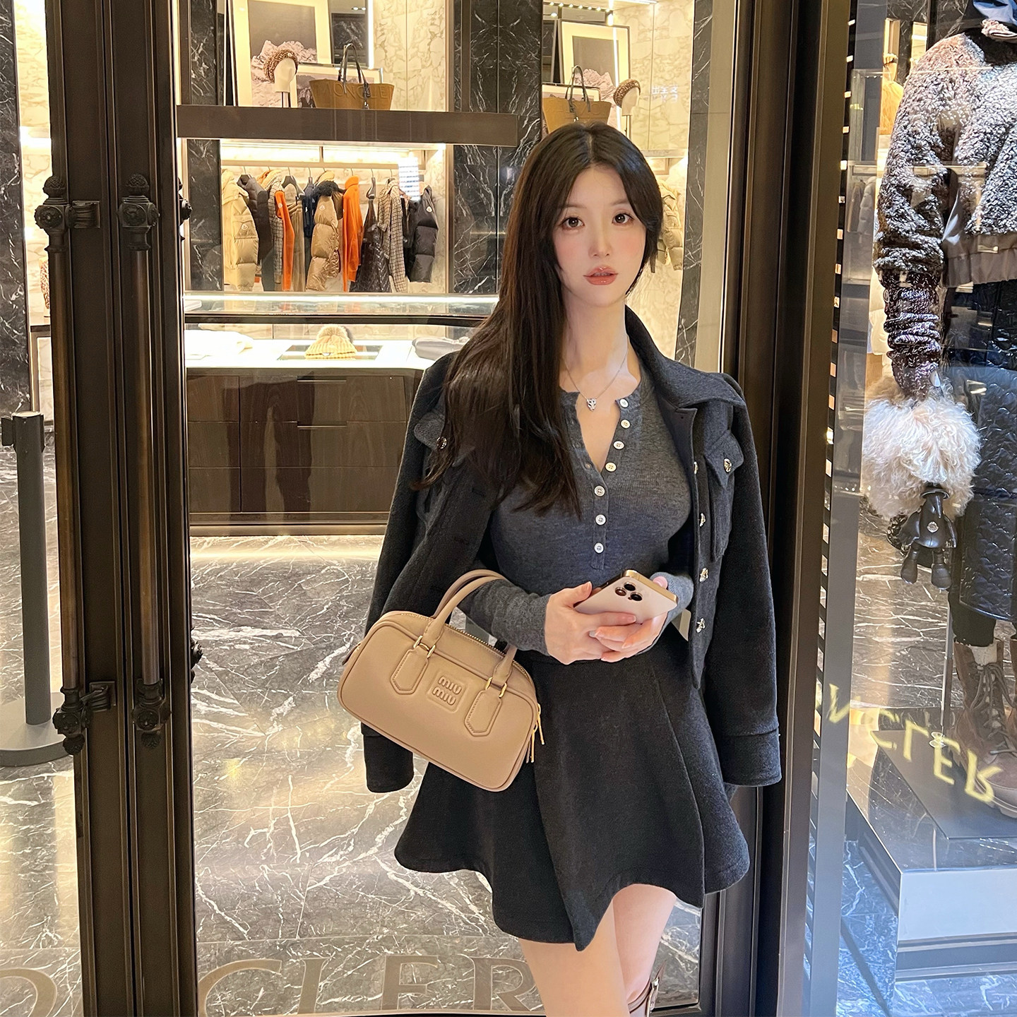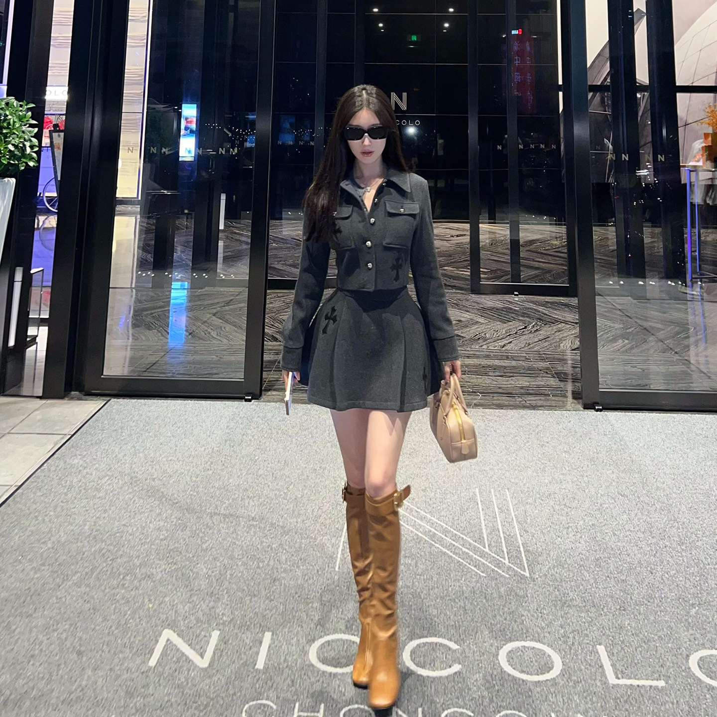 📚 熊熊屋【叛逆学姐】减龄学院风 50羊毛深灰外套 百褶半裙 JK套装