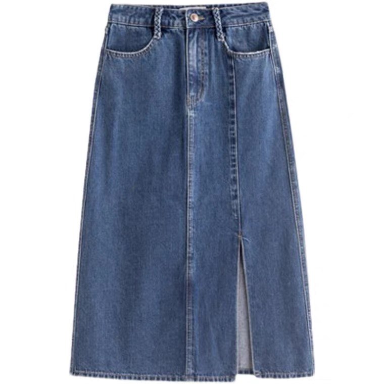 📚 2026年春装女士休闲梨涡系列开叉高腰牛仔半身裙女夏新款a字半裙