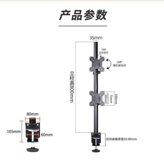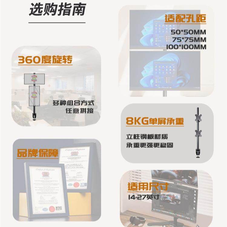 📚 14-27寸通用上下双屏显示器支架多功能旋转桌面底座架夹桌款