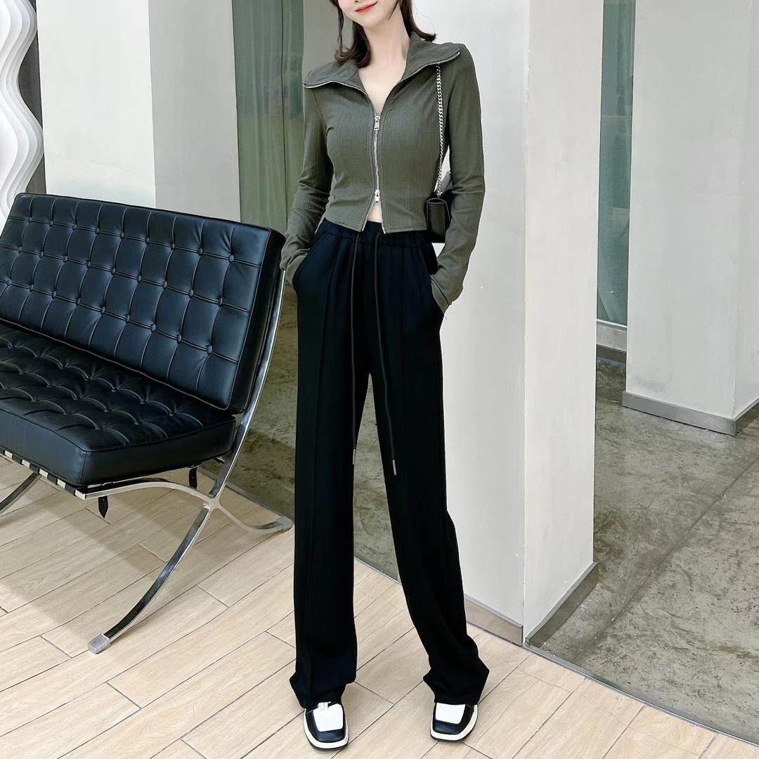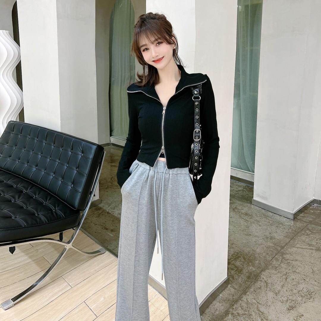 📚 卡卡女装官方正品四穿双拉链翻领针织衫百搭高弹力长袖上衣T恤