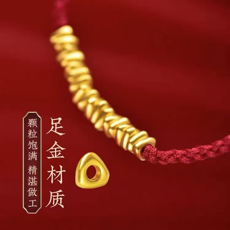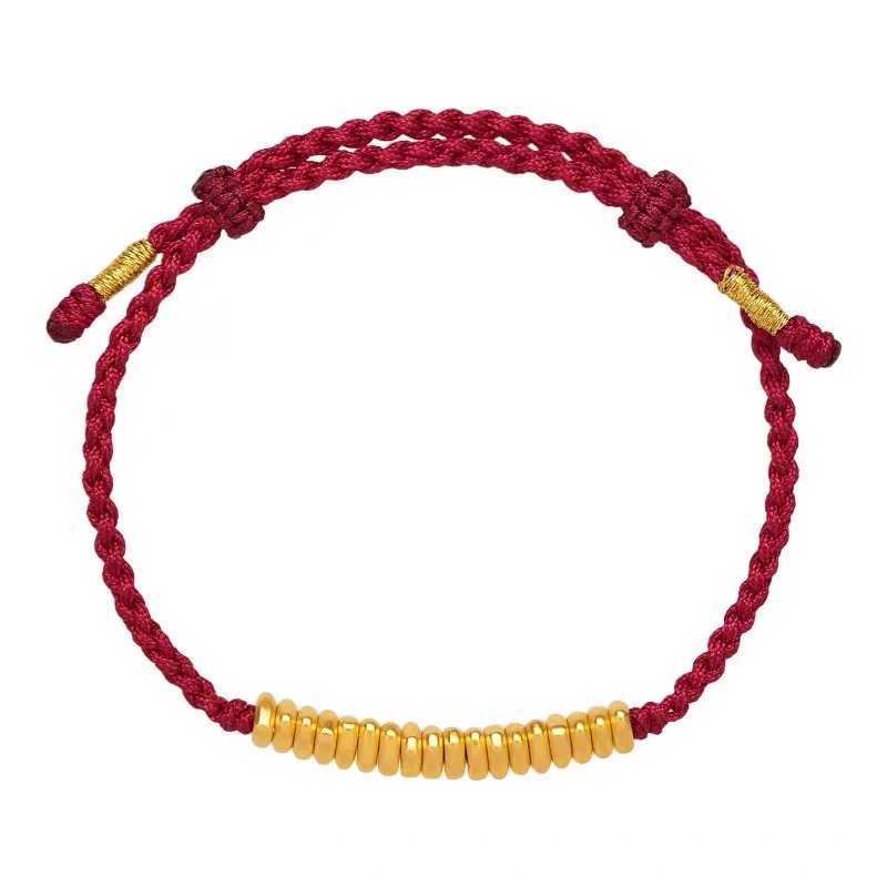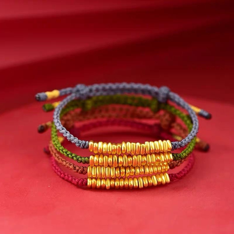📚 老庙黄金盘缠碎金子手链情侣款手绳本命年红绳送女友情人节礼物