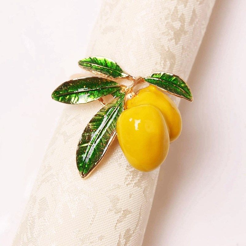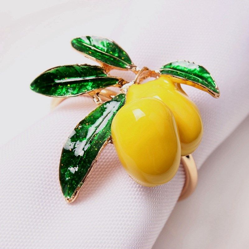 📚 Napkin Rings Set of 8,Lemon Wedding Napkin Holder Gold Napki