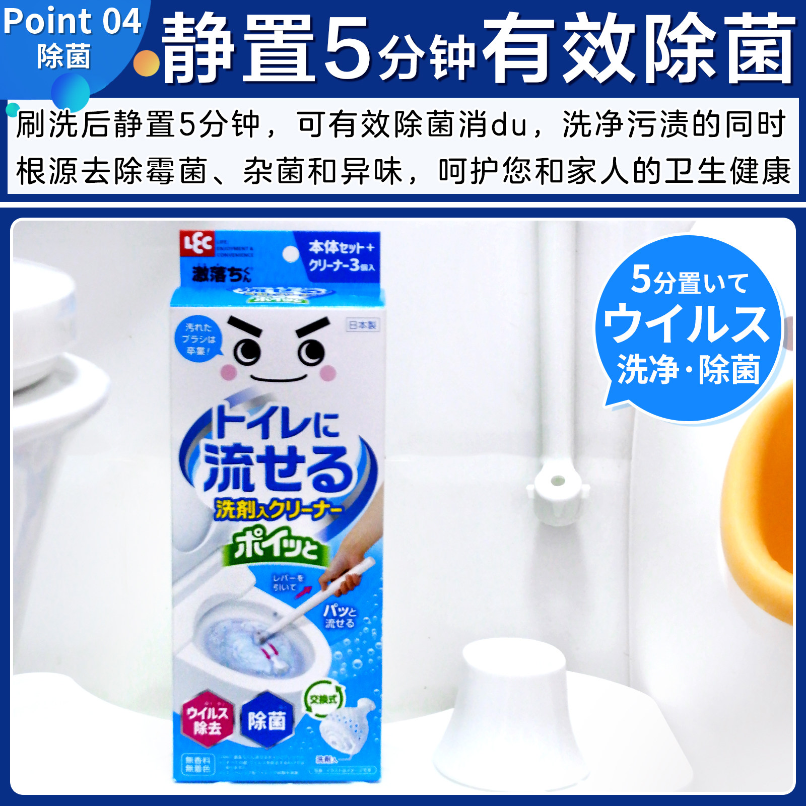 📚 日本LEC一次性泡沫马桶刷快速溶水去污除菌无死角自带清洁剂可挂