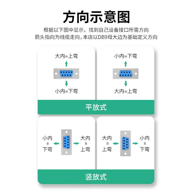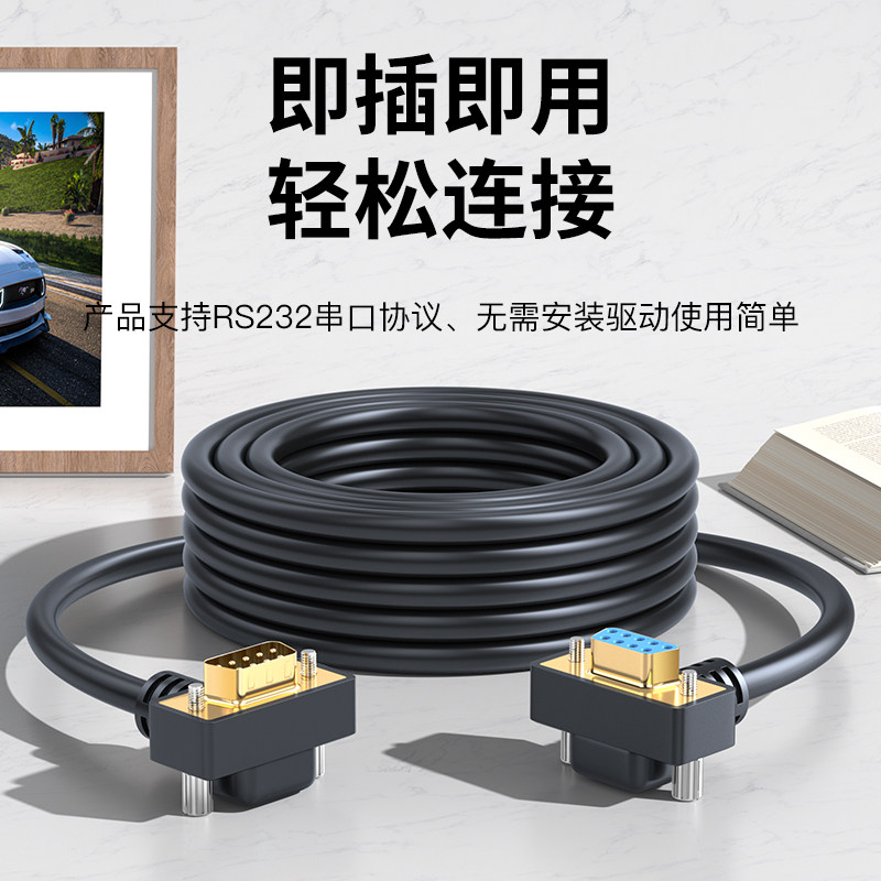 📚 绿众90度串口双弯头DB9数据线rs232连接com延长线9针公对母针对孔