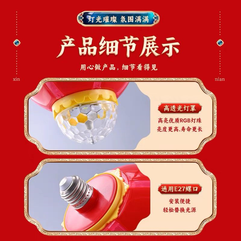 🎁这款灯的设计超级独特,七彩旋转跑马灯笼的色彩丰富且梦幻,让人一眼就能感受到浓厚的节日气氛。而且它采用了LED灯技术,亮度高、寿命长,非常适合春节这样的喜庆场合。