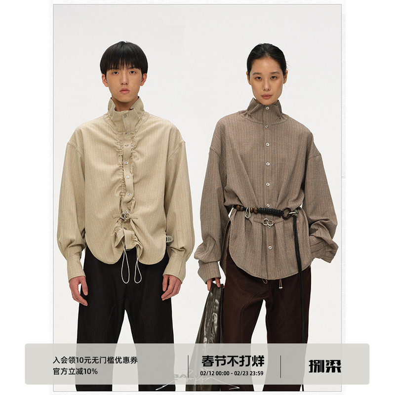 📚 BALIANG「捌樑」 束'tie' 可塑性抽褶木耳边长袖衬衫廓形立领上衣