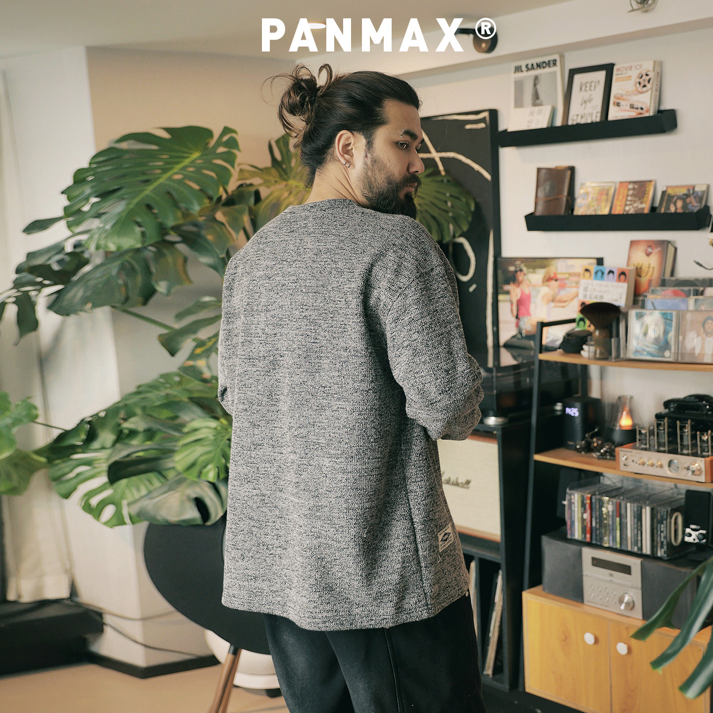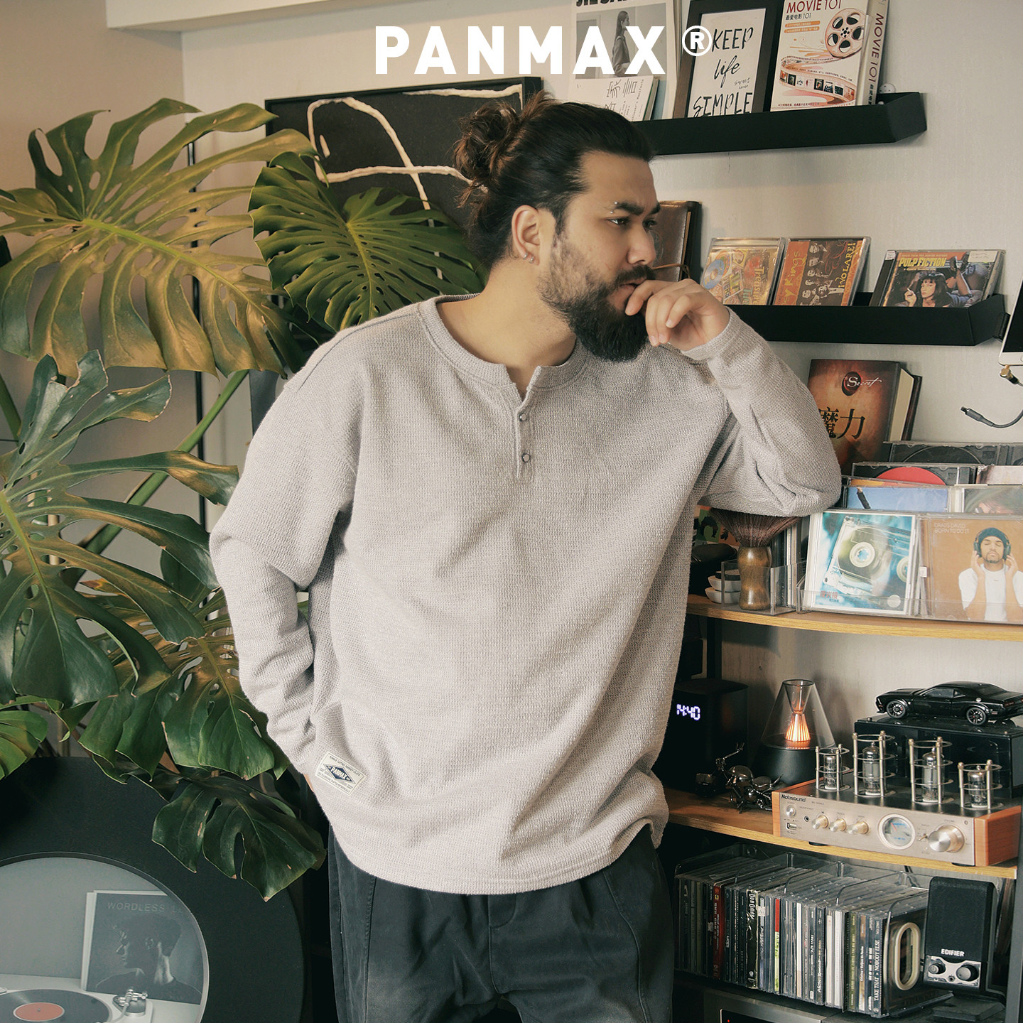 📚 PANMAX潮牌大码男装老钱风秋冬加绒长袖T恤针织感亨利领重磅保暖