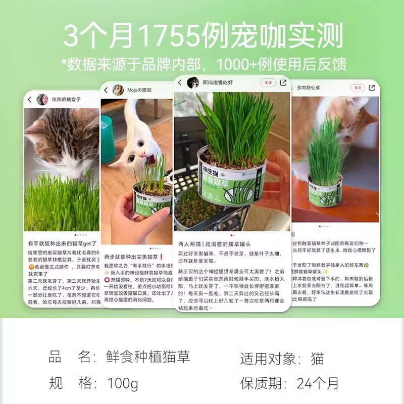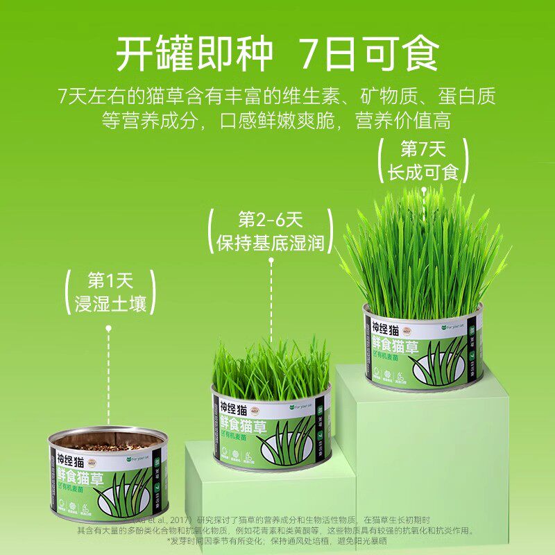📚 小麦猫草种植猫草盆栽懒人猫草罐头幼猫咪助排化毛草冻干薄荷片膏