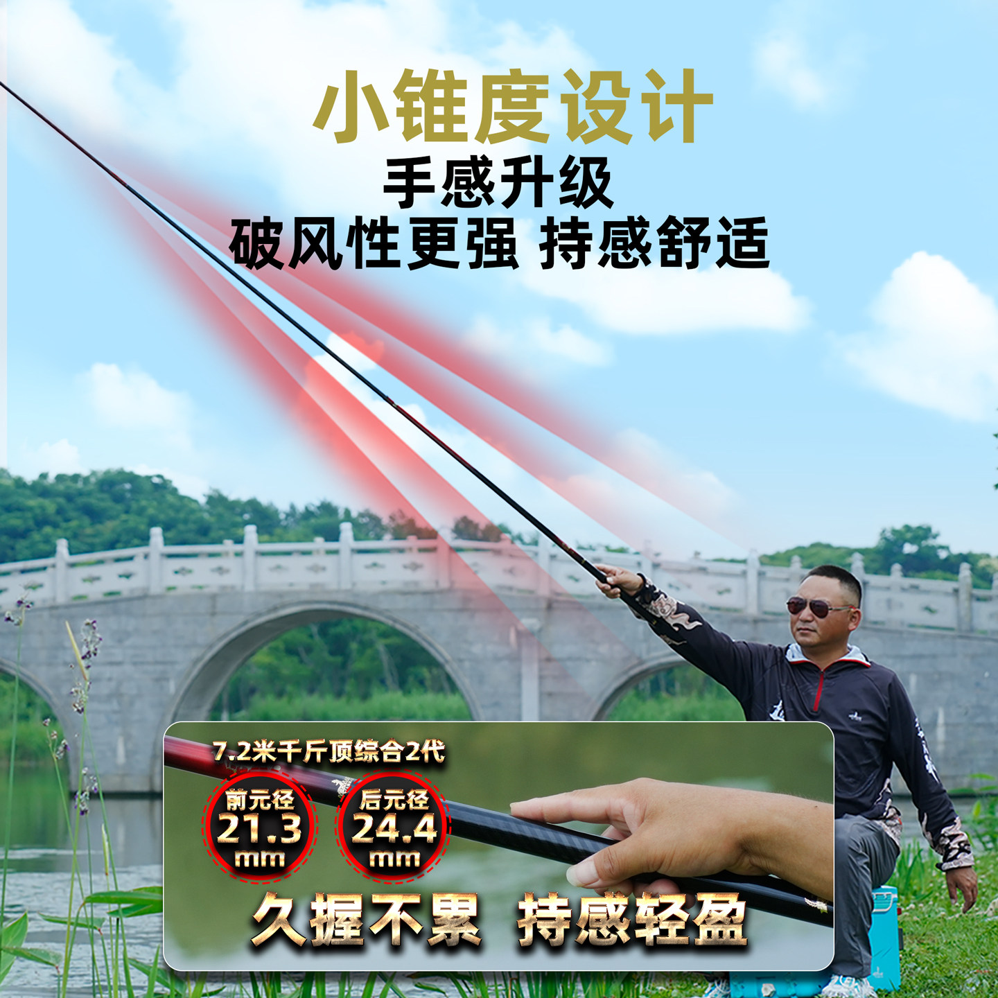 📚 美人鱼千斤顶二代轻量综合竿钓鱼竿手竿轻硬挺高碳鱼竿鲫鱼台钓竿