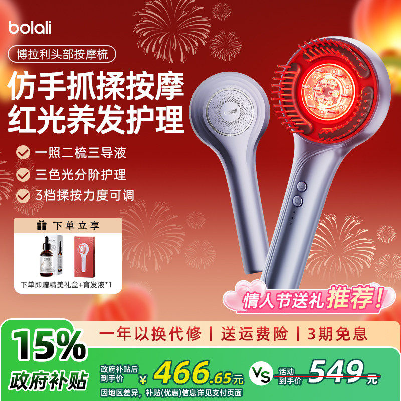 📚 博拉利头皮按摩梳电动养发护发红光精油导液抓揉梳舒缓头部按摩器