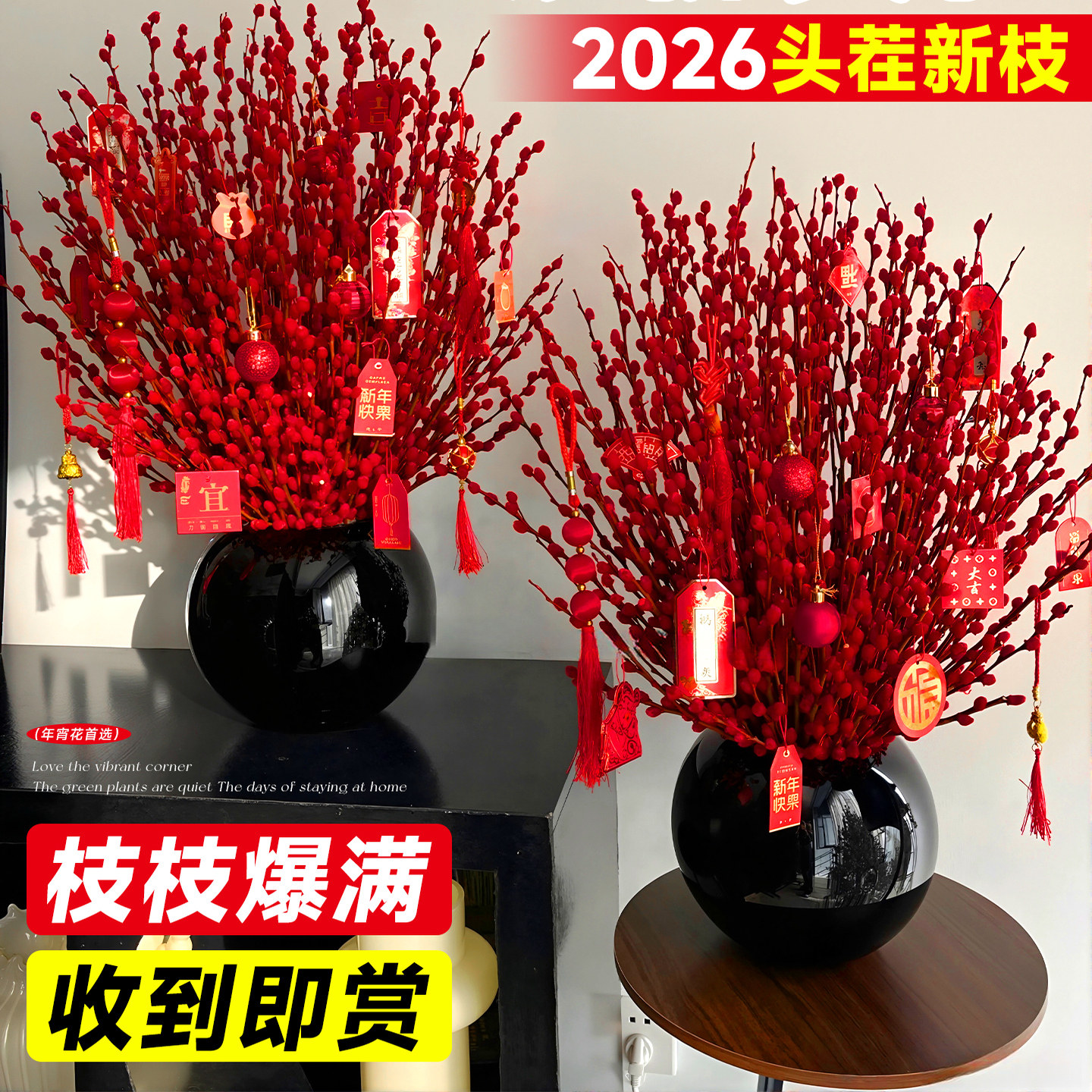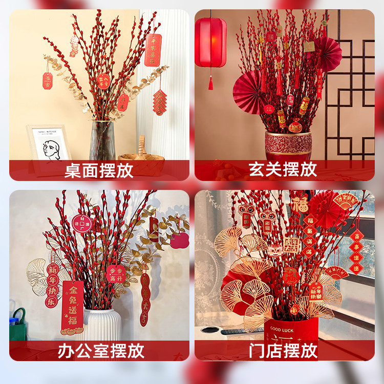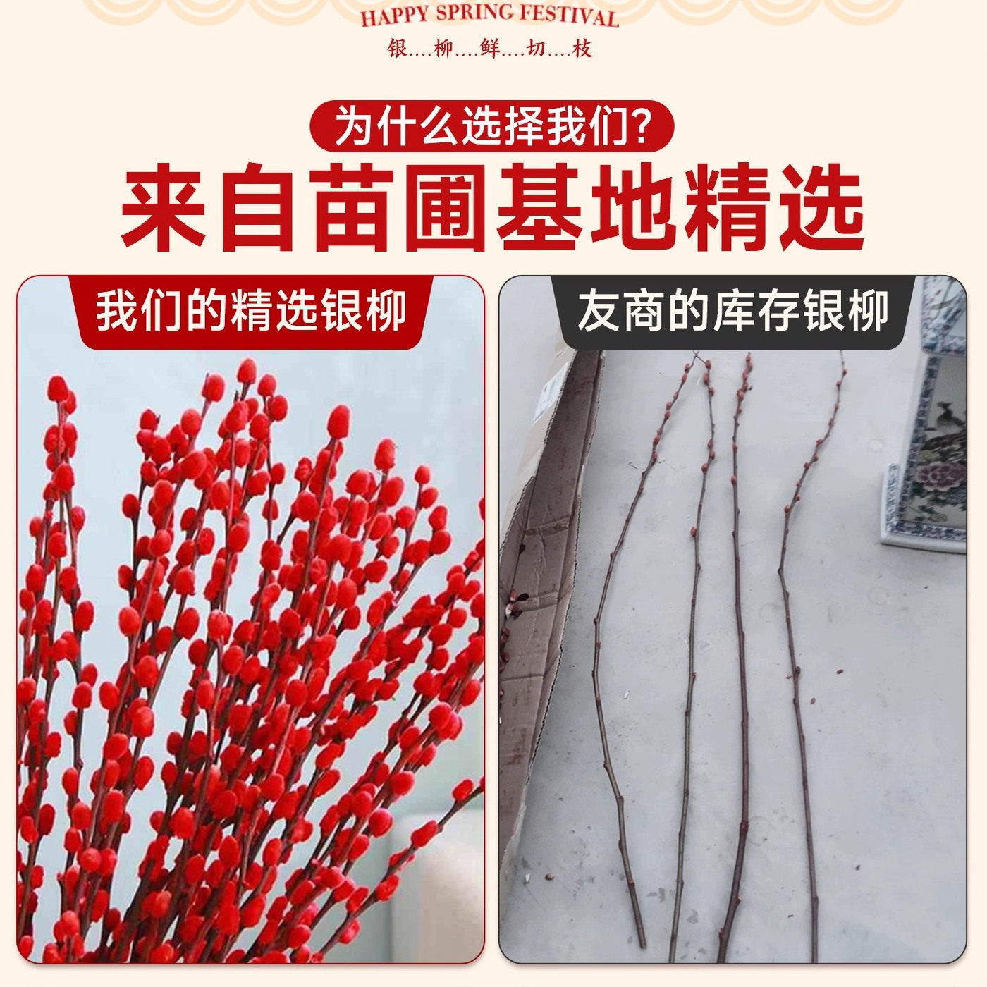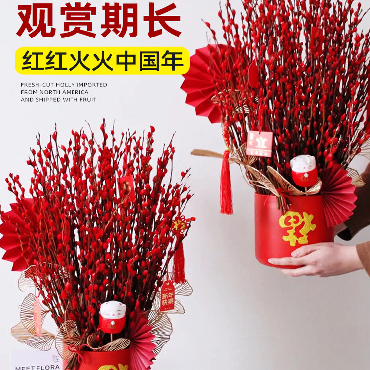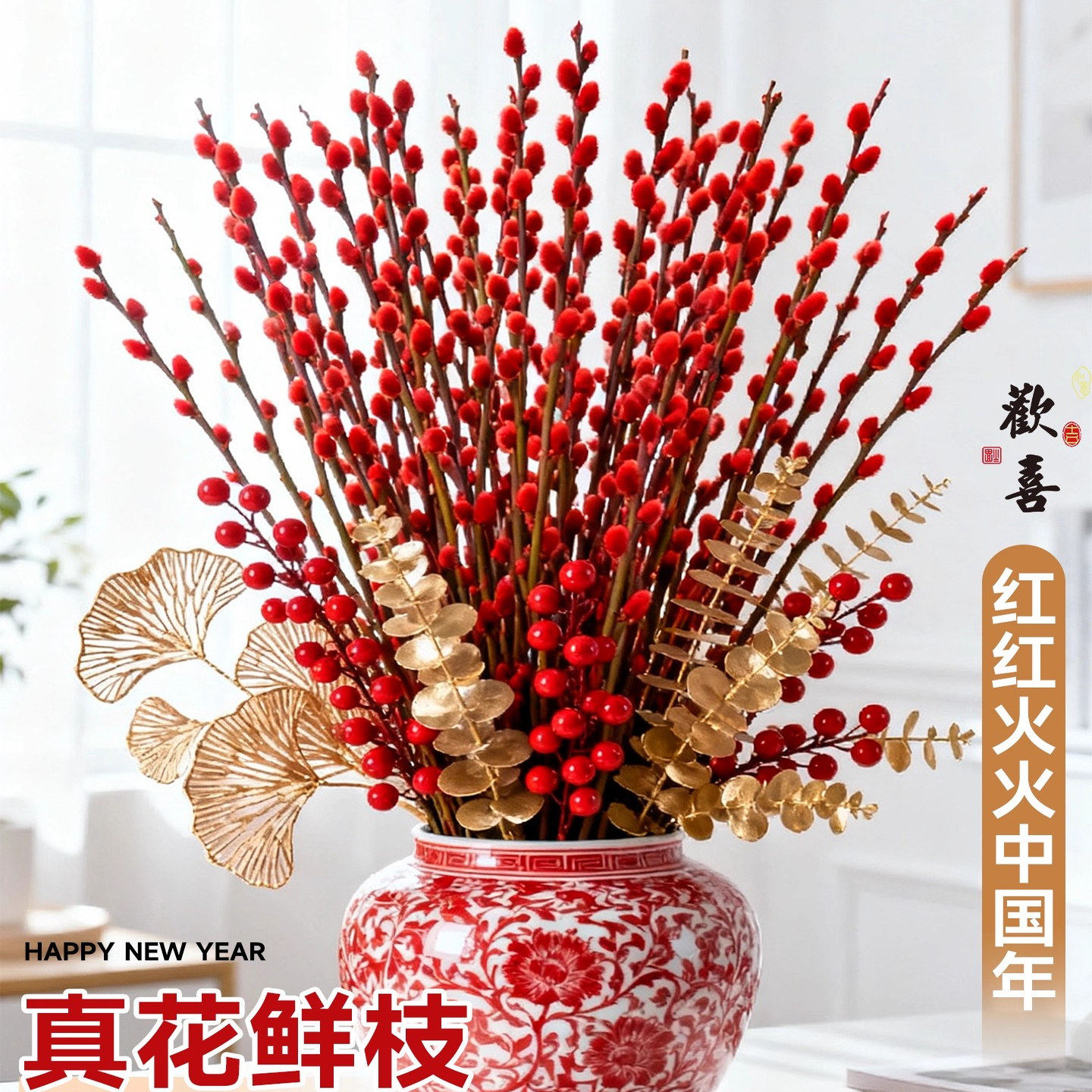 📚 银柳鲜枝耐寒年宵花红色真花干花枝室内客厅招财摆件新年装饰花束