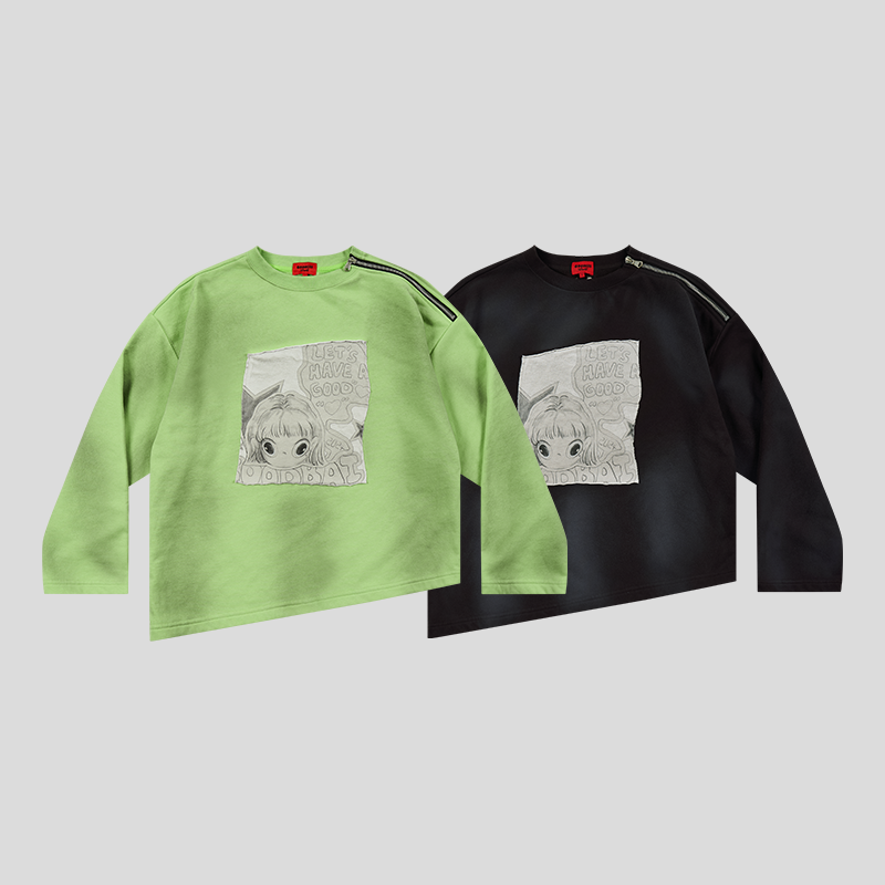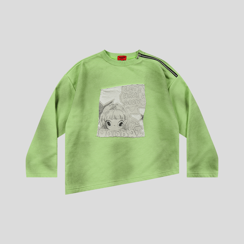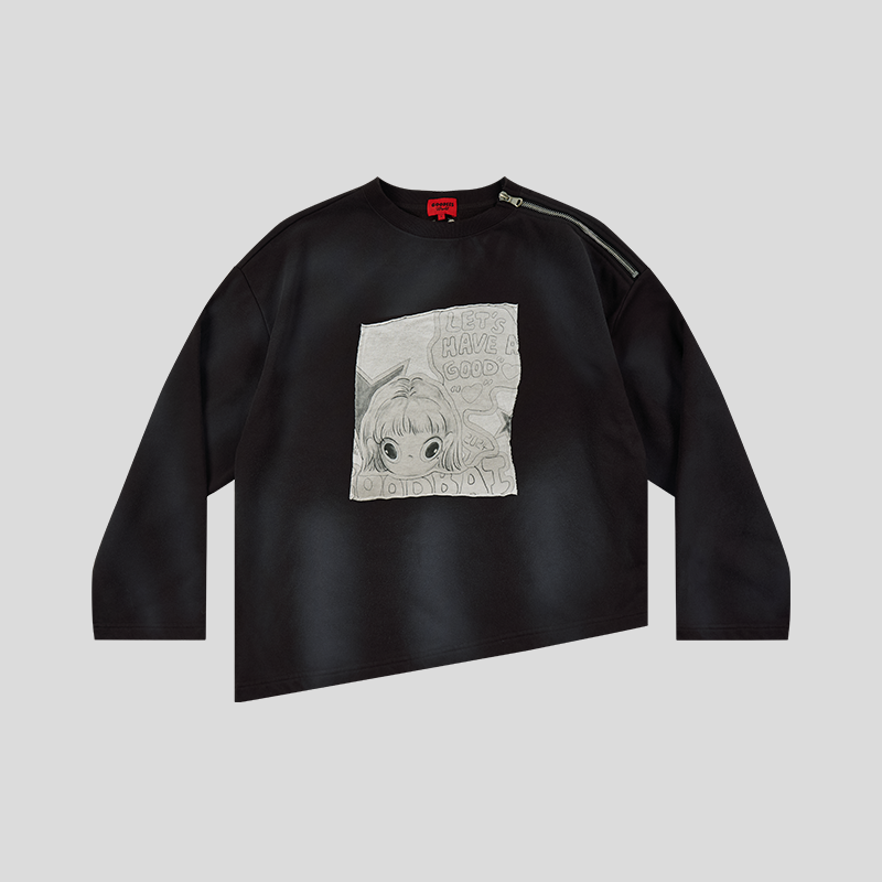 📚 GOODBAI GOODEES漫画封面女孩图案喷脏做旧领口拉链卫衣