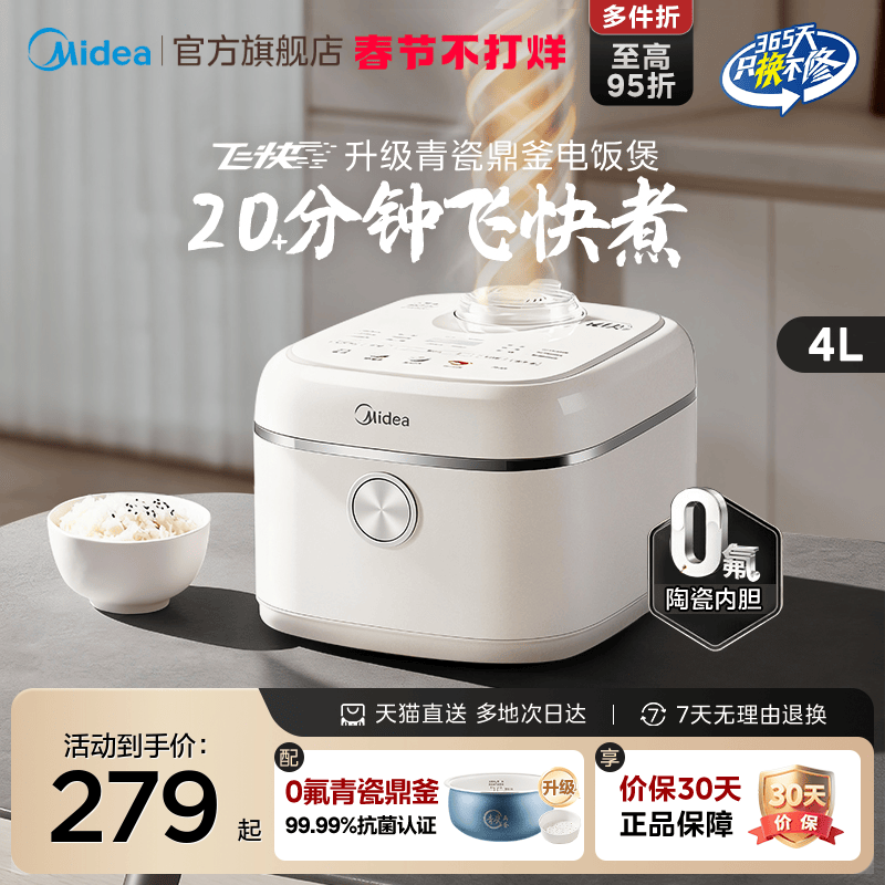 📚 美的飞快电饭煲奶油风大容量5升4-5-10人用电饭锅正品官方旗舰店