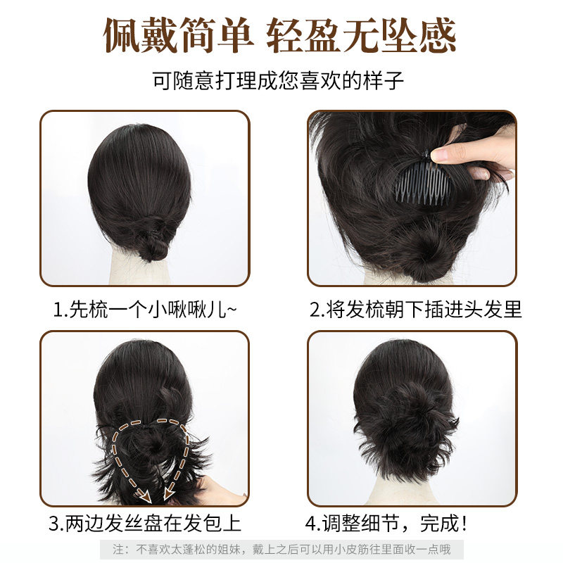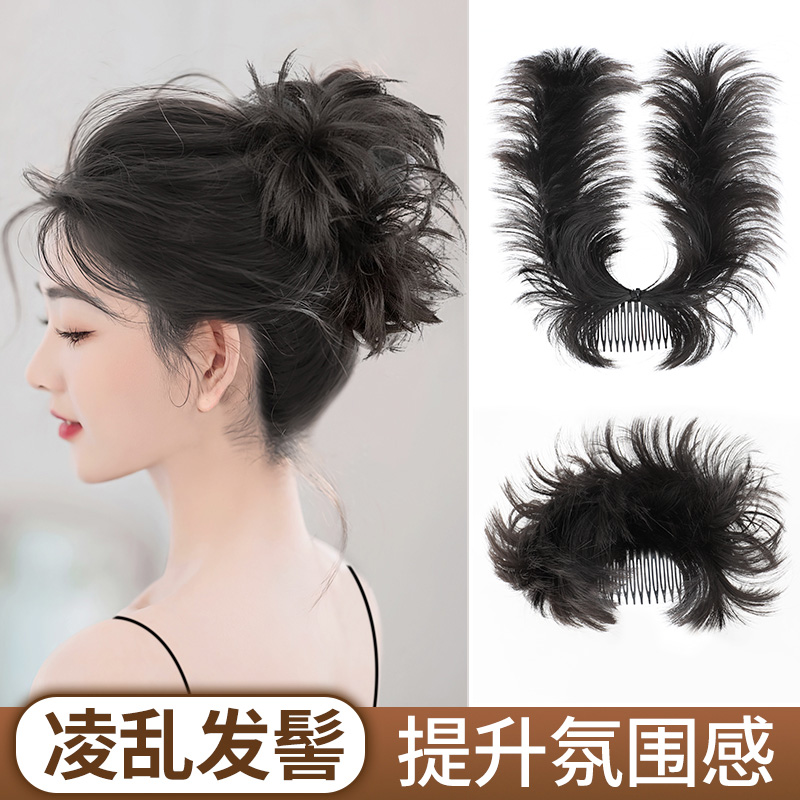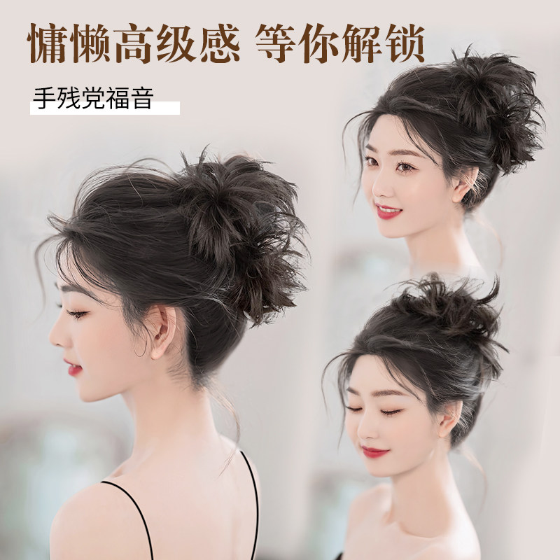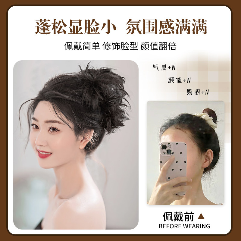 📚 丸子头假发发圈仿真发慵懒盘发神器摄影写真凌乱鸡窝头抓夹花苞头