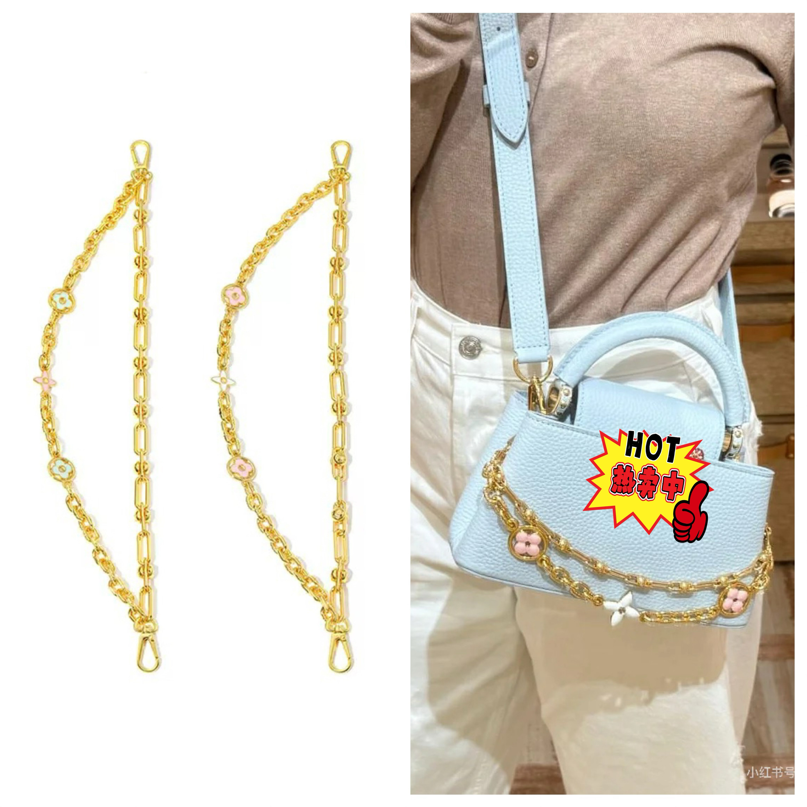 📚 适用lv capucines村上隆双链条四叶草挂件改造卡普心包包挂饰链子