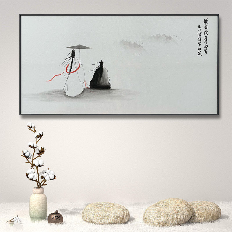📚 新中式国风今生今世结婚礼物送新人高档装饰画水墨画沙发背景挂画