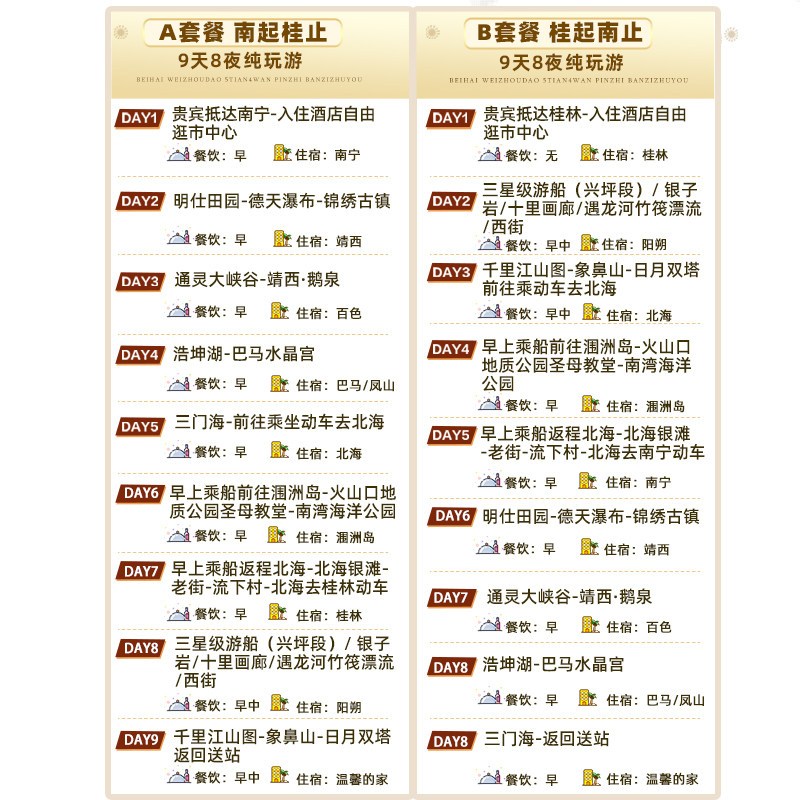 📚 8人小团 南宁崇左百色巴马北海桂林9天8晚游德天明仕涠洲岛七日
