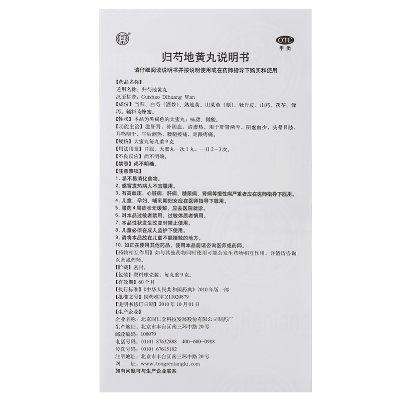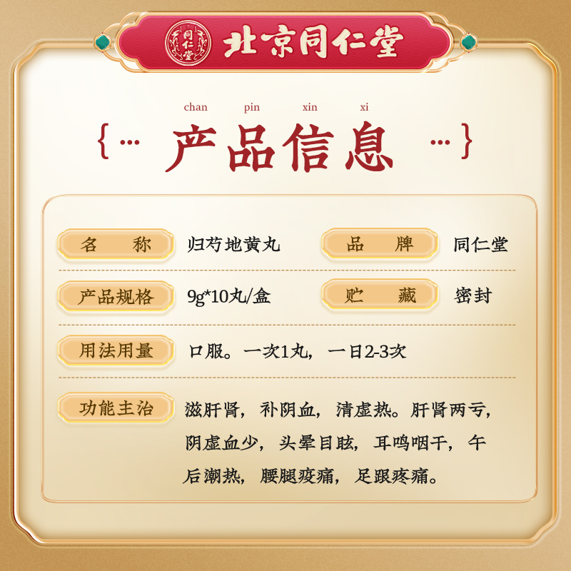 📚 同仁堂归芍地黄丸9g北京同仁堂头晕目眩官方正品阴虚血少六味地黄