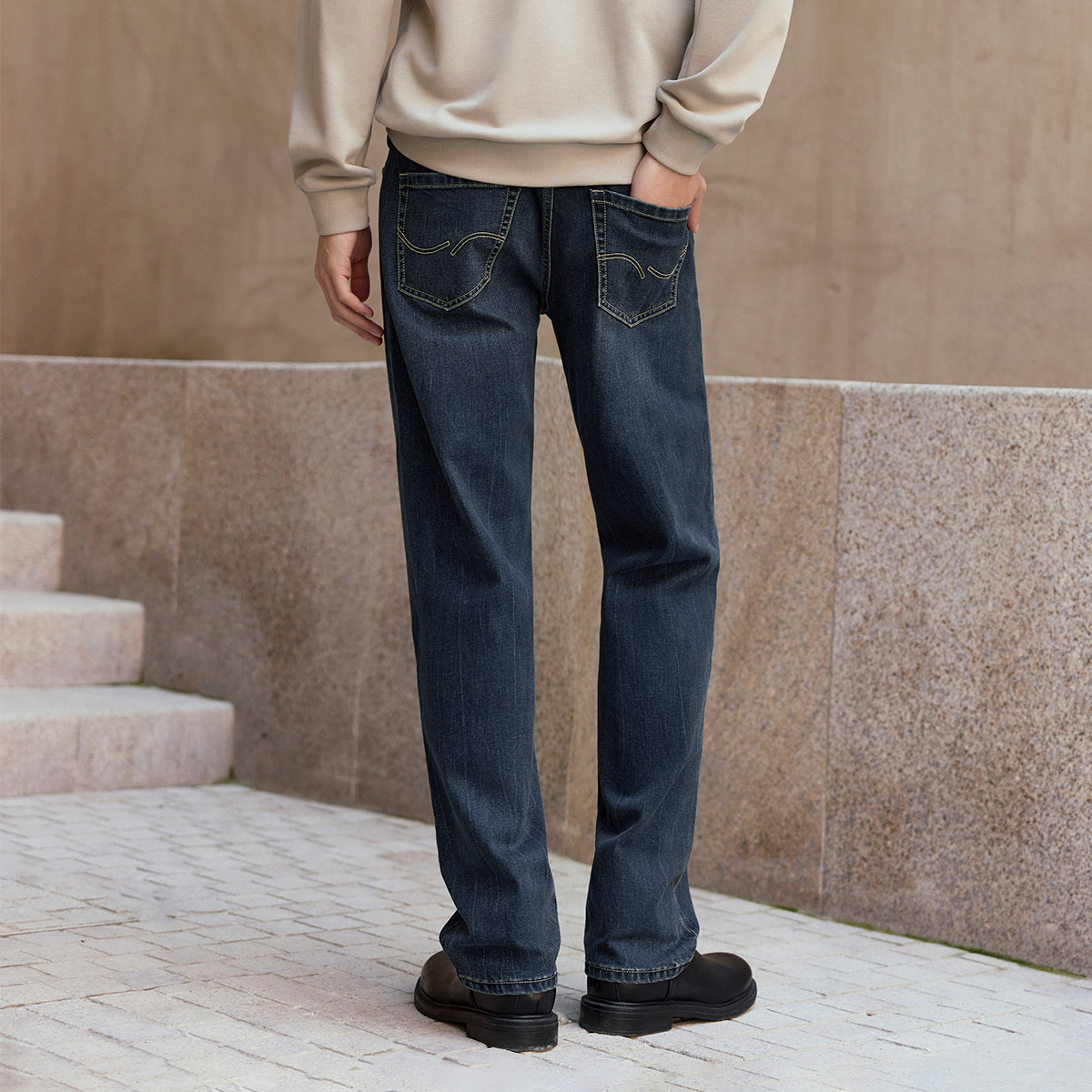 📚 杰克琼斯男装秋季牛仔裤宽松直筒水洗猫须多口袋皮标日常长裤裤子