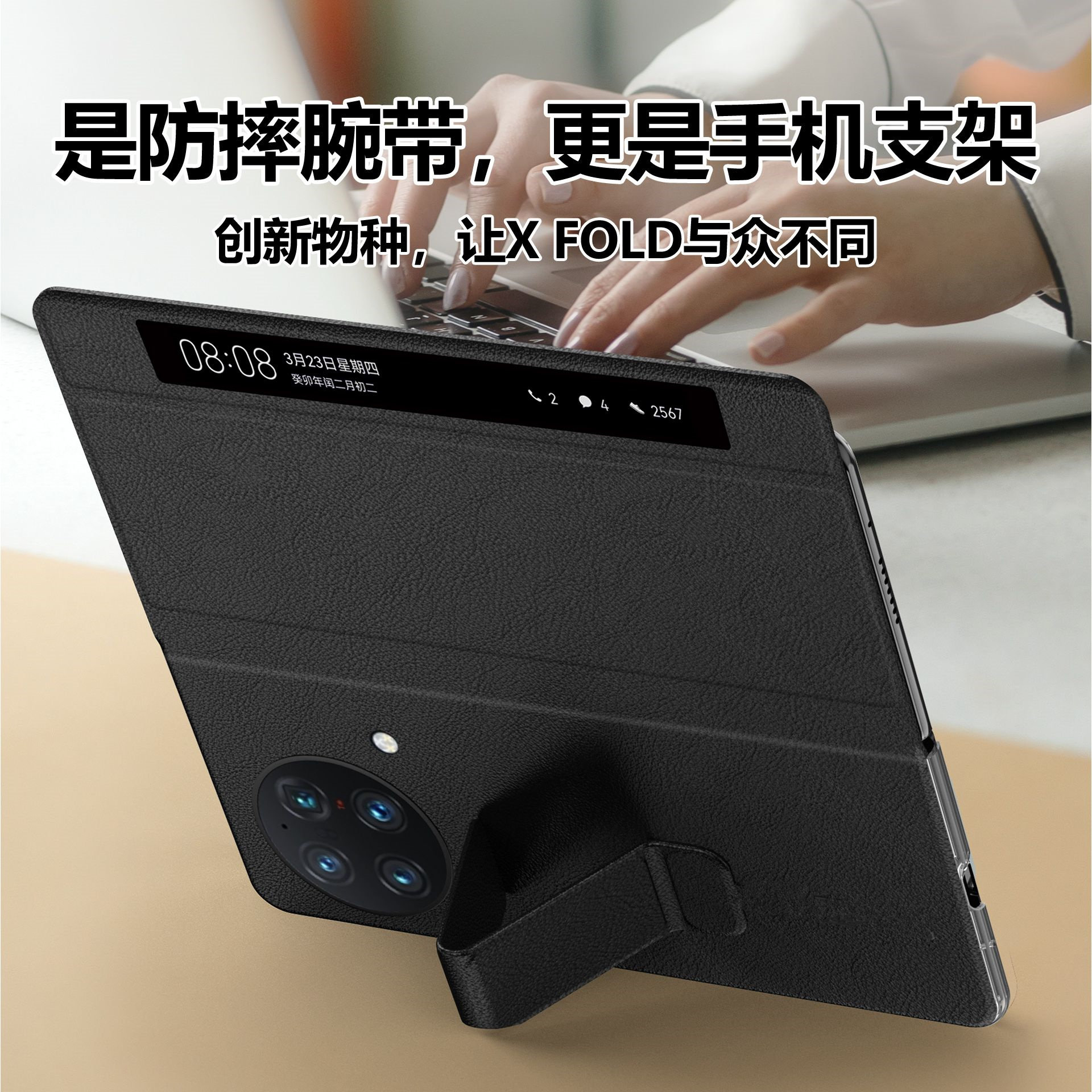 📚 适用vivoxfold手机壳新款真皮xfold+折叠屏腕带支架保护壳vivo x fold全包防摔高档男女外壳超薄皮套款