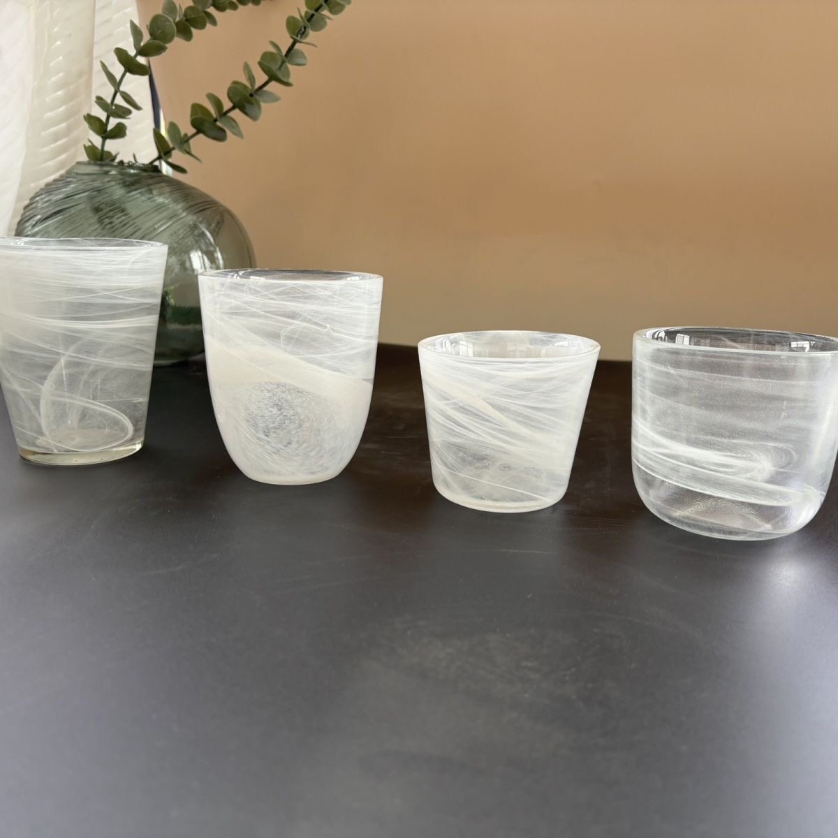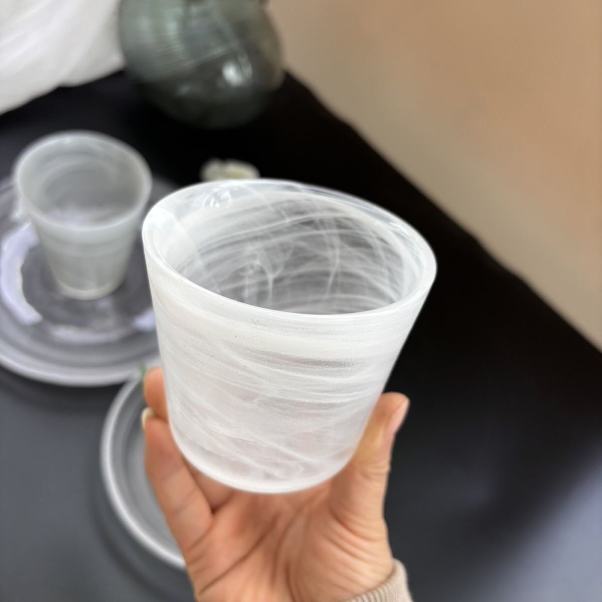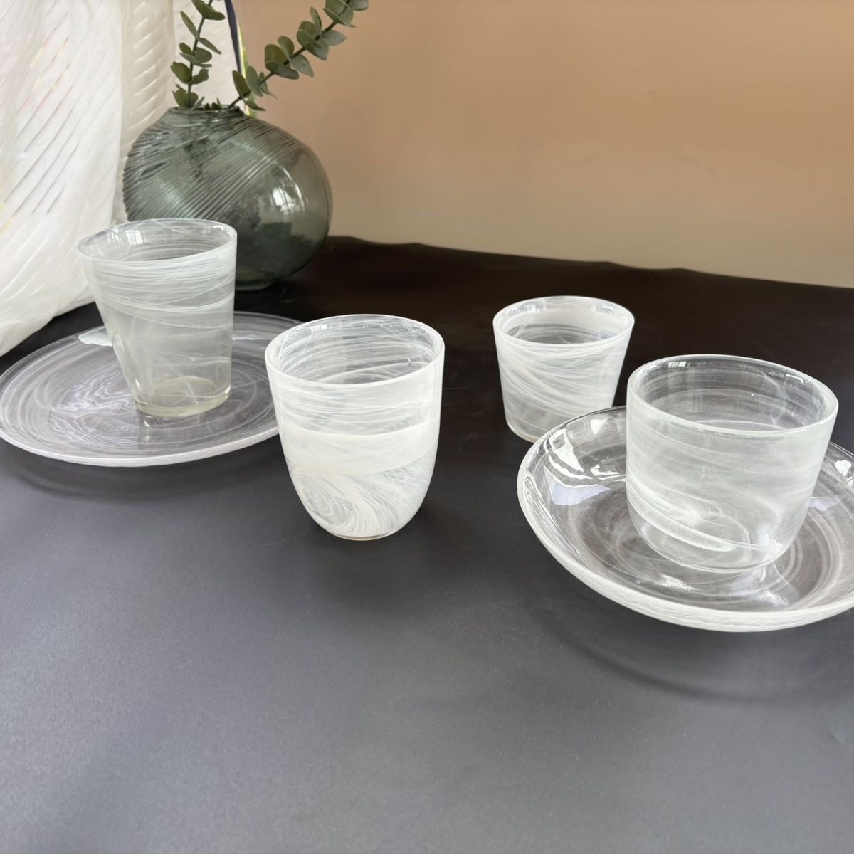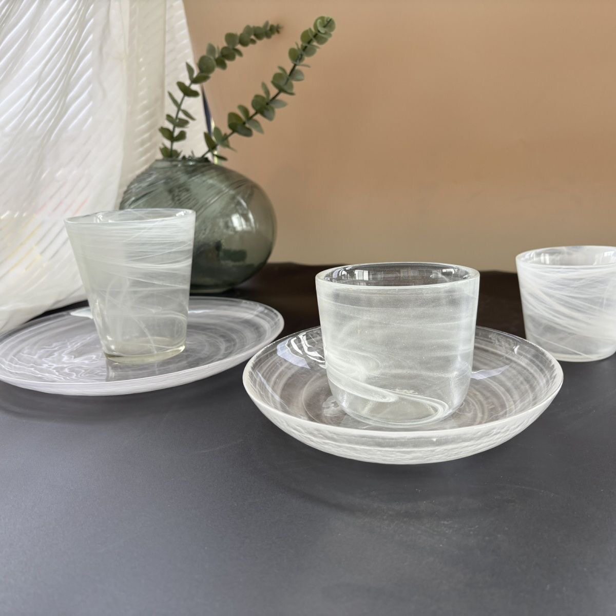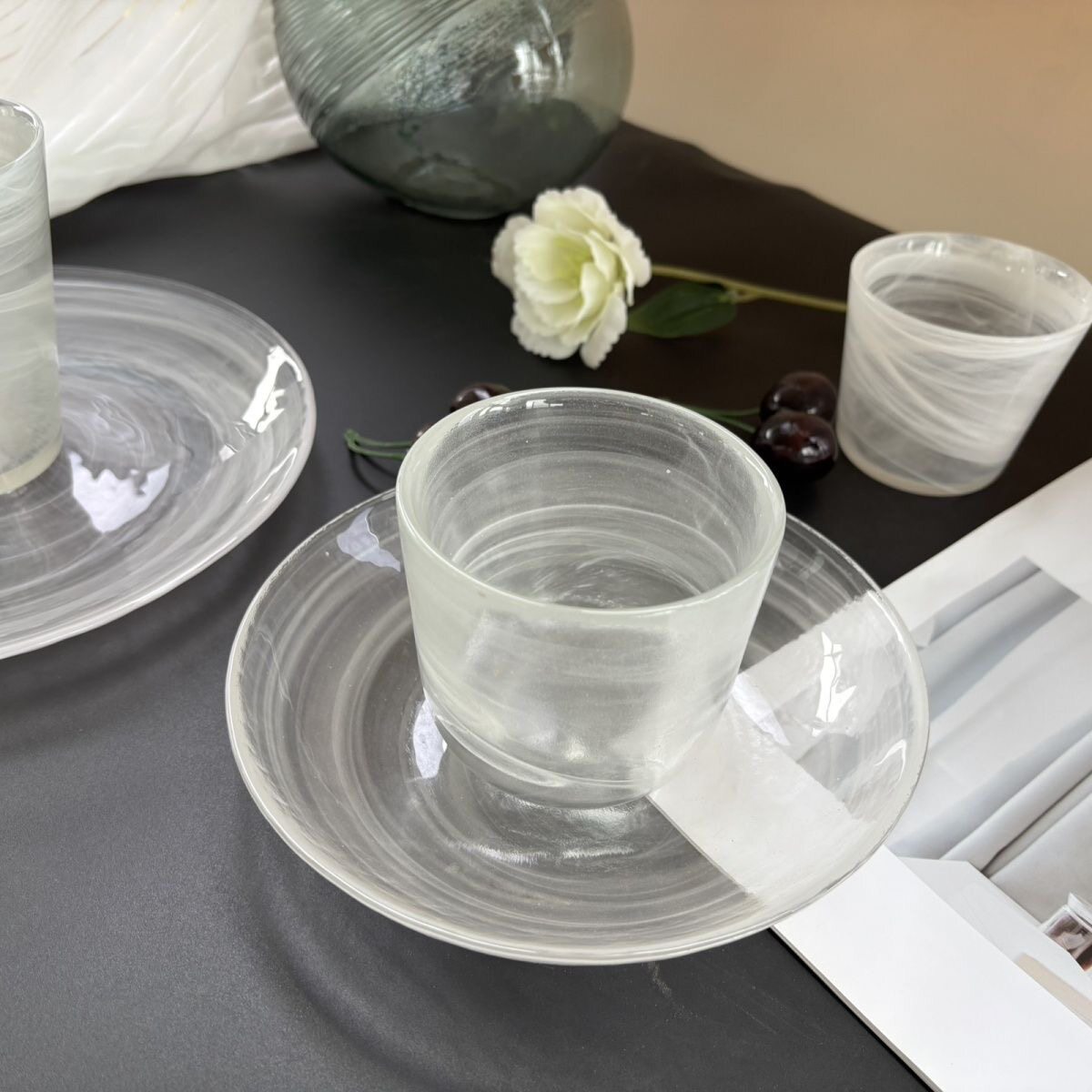 📚 创意白色水墨玻璃盘云雾玻璃餐具套装家用云雾饮水杯玻璃餐具套装