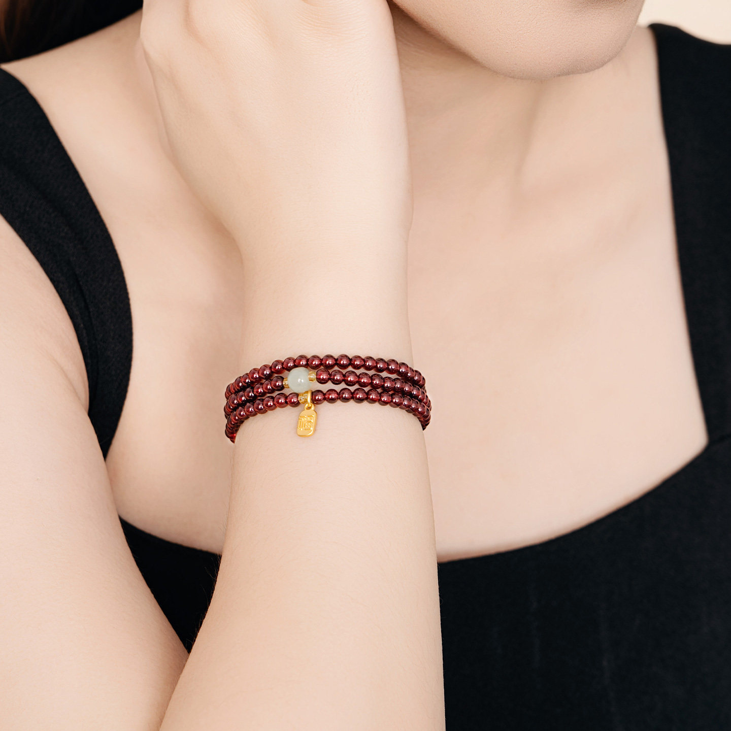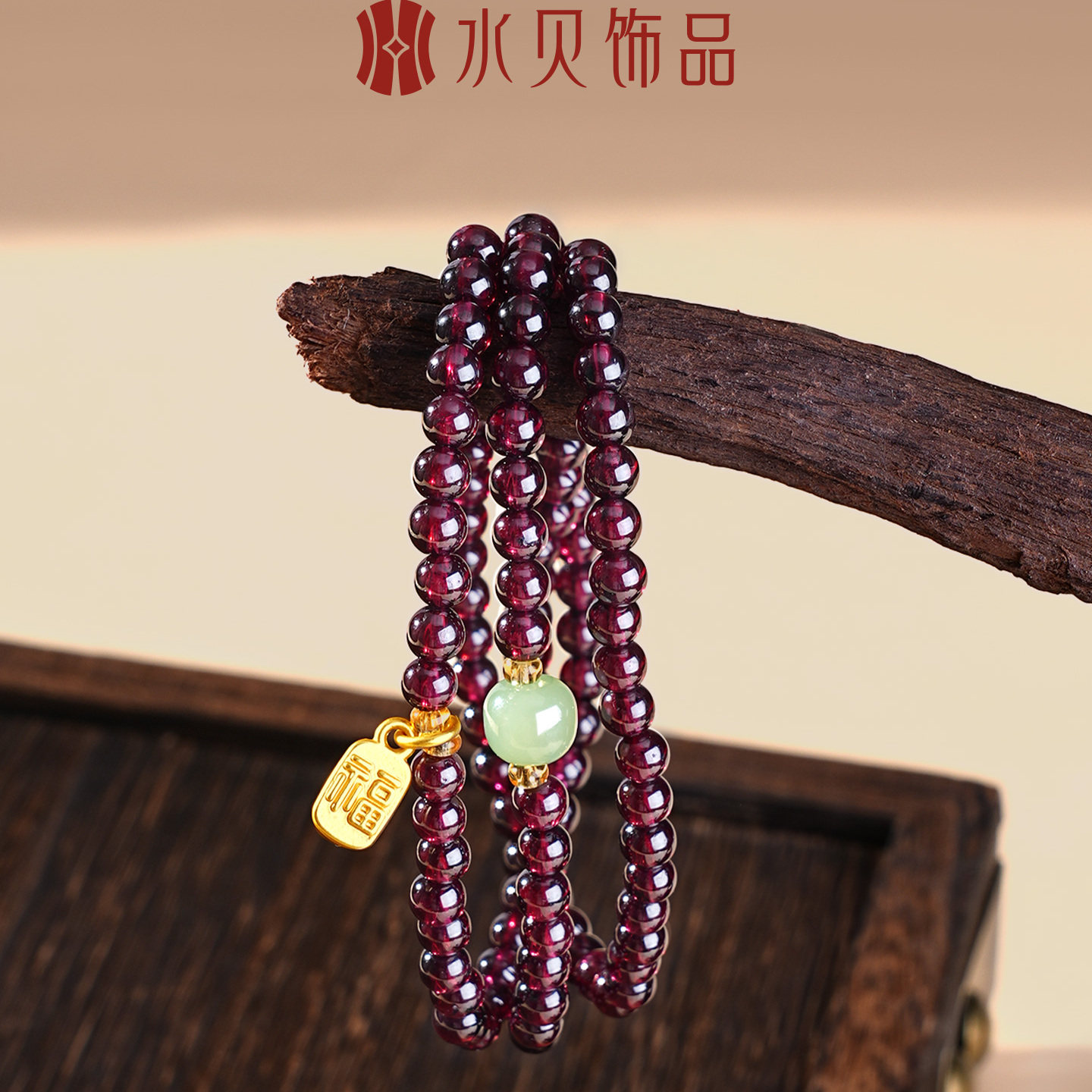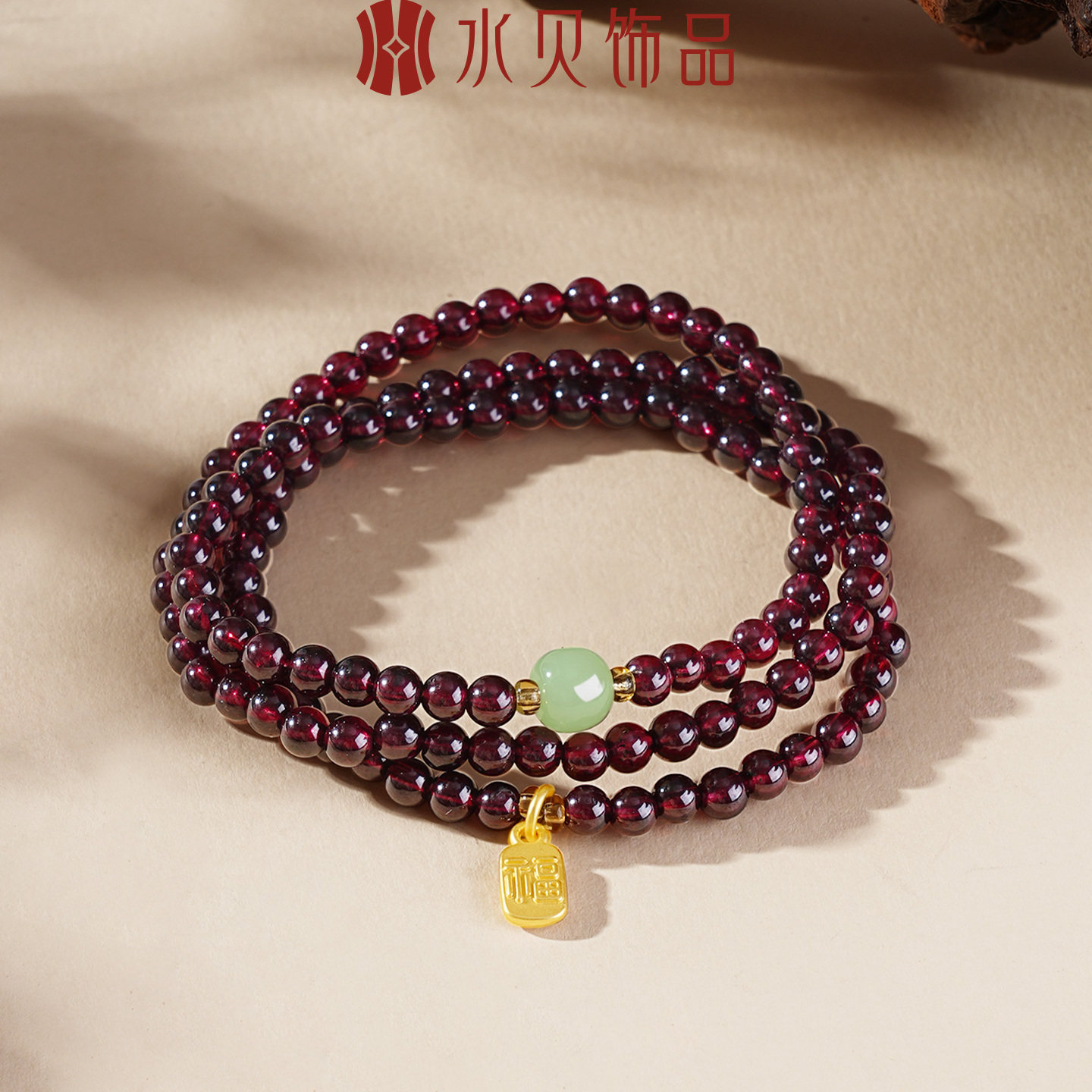 📚 水贝银饰官方旗舰店石榴石合金手串和田玉三圈手链七夕礼物送女友