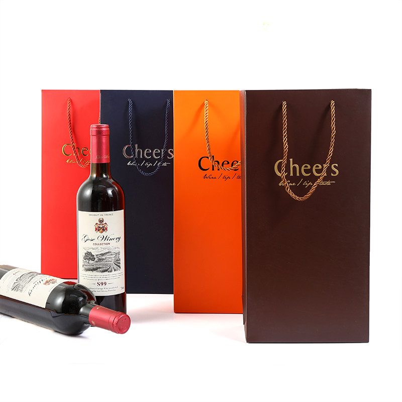 📚 现货烫金礼品袋优质白卡双支装红酒袋葡萄酒袋子手提送礼定制logo