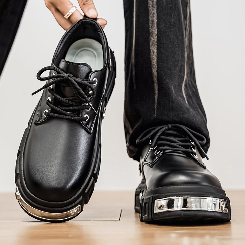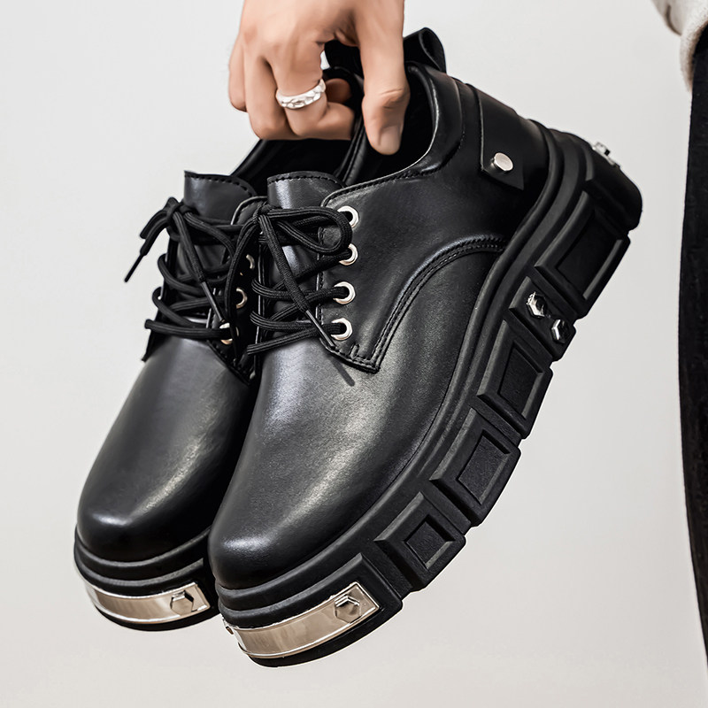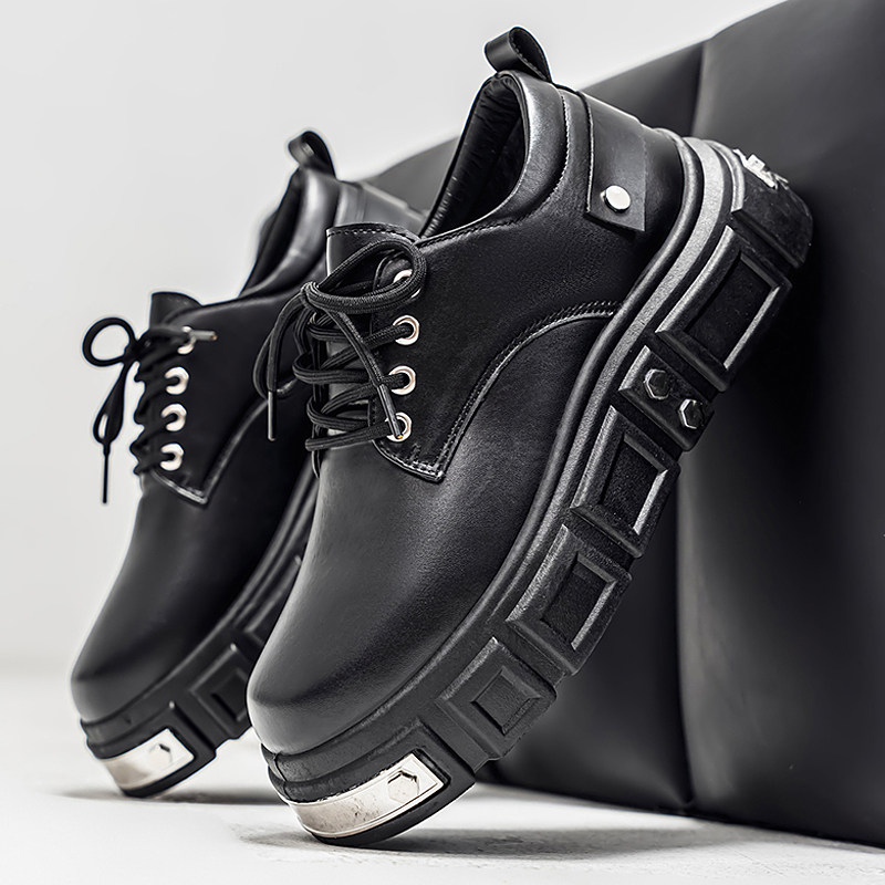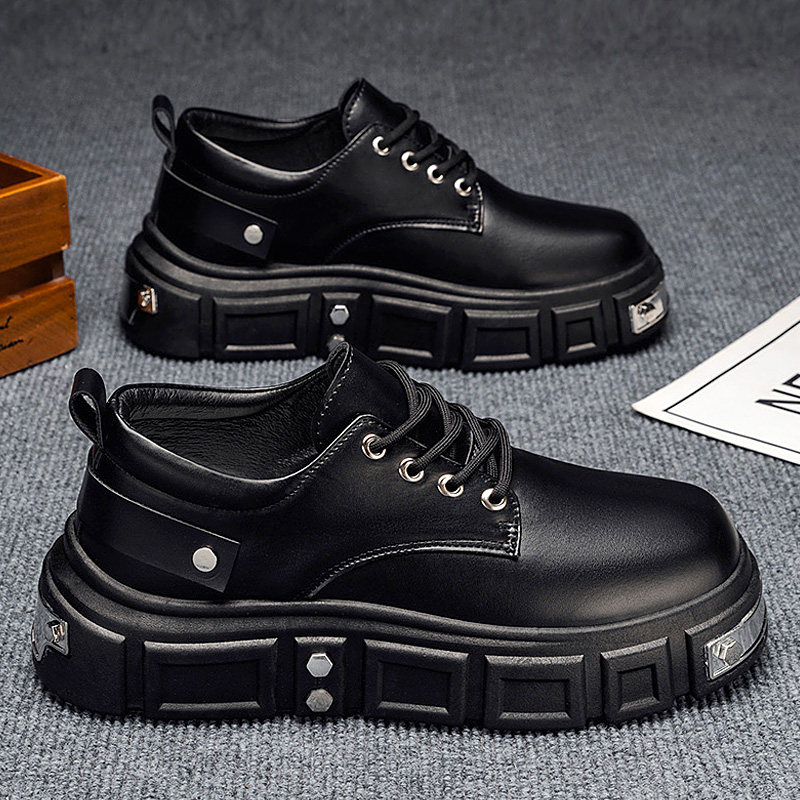📚 皮鞋男2026新款冬季高级感青少年比德鞋休闲运动黑色厚底增高板鞋