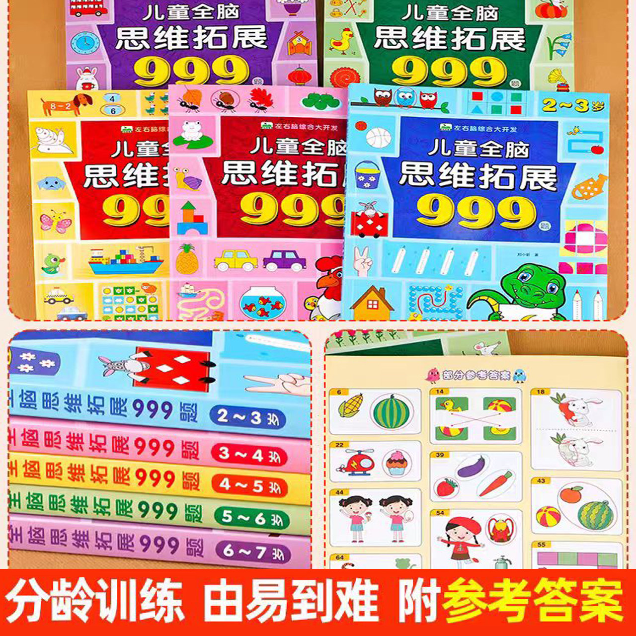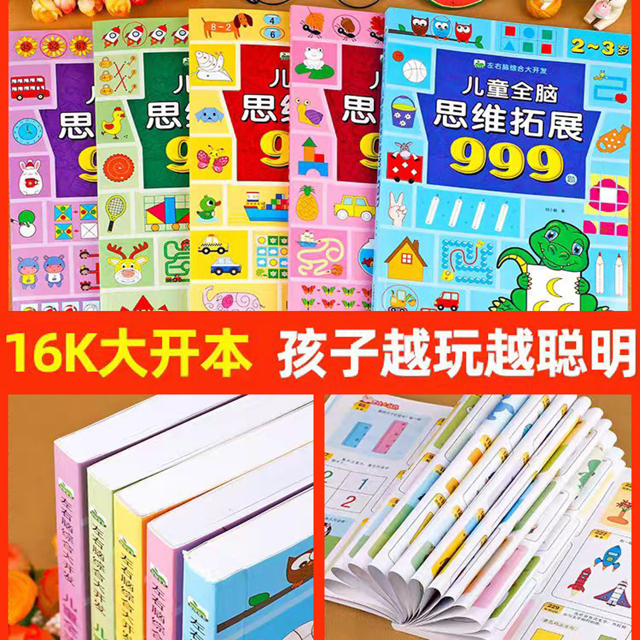 📚 儿童全脑思维拓展训练999题 2-3-4-5-6-7岁幼儿左右脑开发思维逻辑训练书儿童专注力游戏书幼儿园小班中班大班潜能开发益智书籍