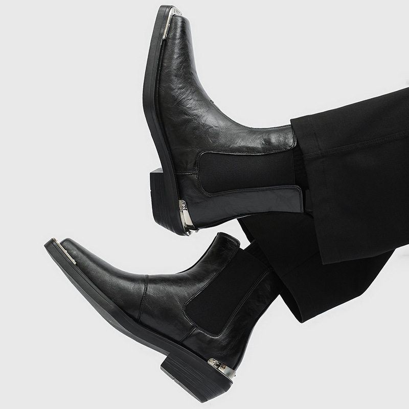 📚 新款铁头靴高跟切尔西靴男款方头马丁靴休闲男靴
