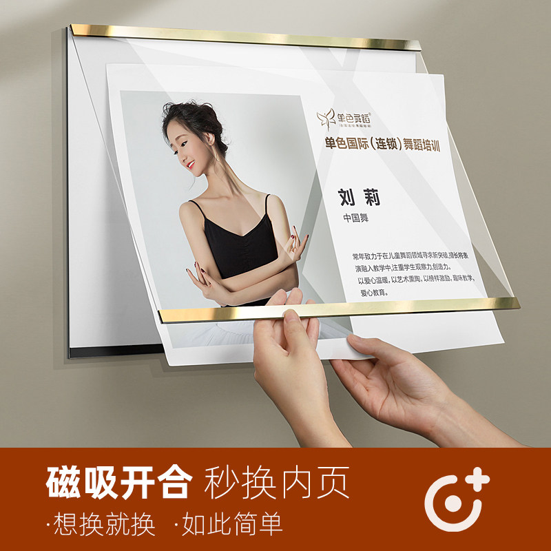 📚 A4磁性展示贴师资简介照片墙医生教练介绍墙展示牌墙贴亚克力磁吸相框挂墙免打孔画框裱框面可更换广告牌定制