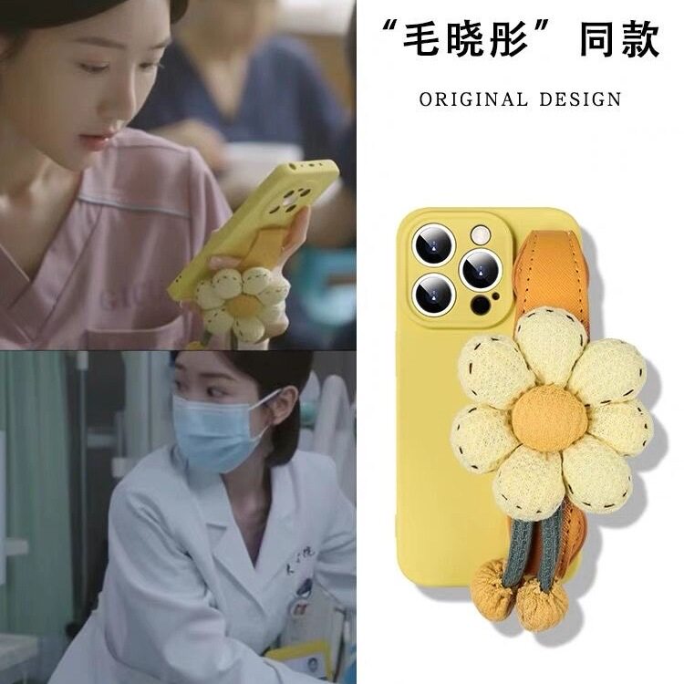 📚 黄色南瓜花朵手腕带适用iphone16promax手机壳苹果13硅胶12保护套14Pro简约11新款15ProMax全包防摔13Pro软壳