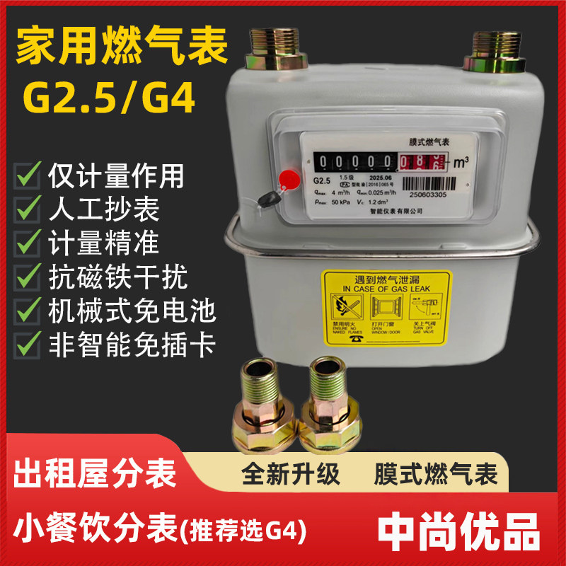 📚 包邮G4 G2.5家用天然气表 煤气表 膜式燃气表 流量表 铜铁接 分表