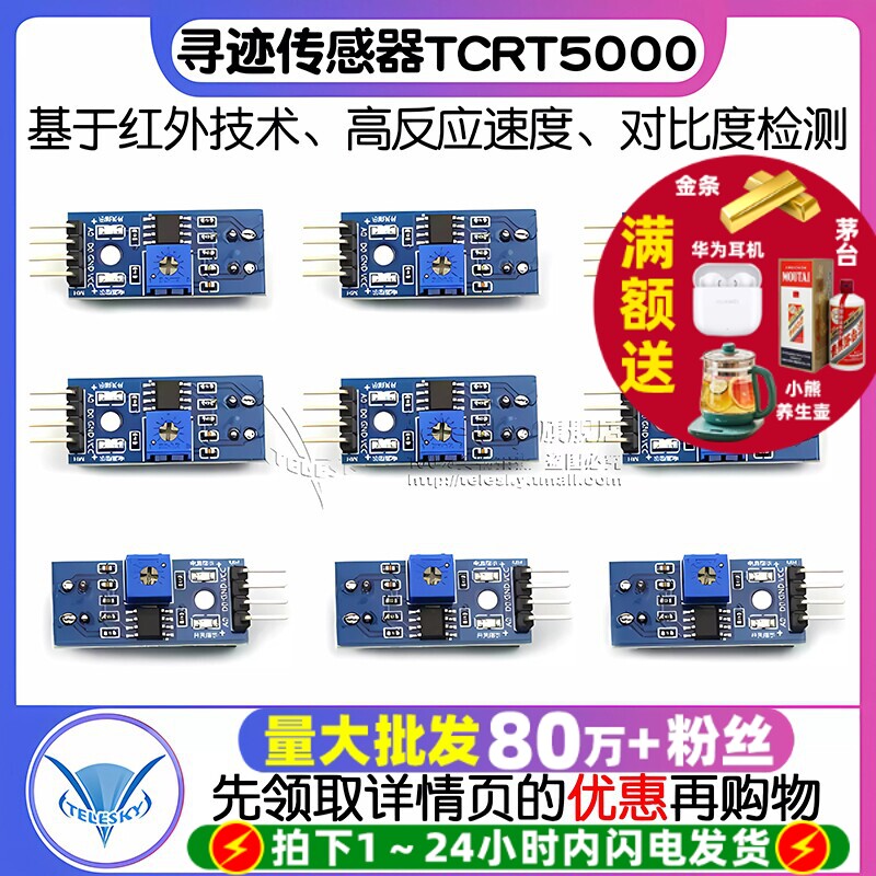 📚 TELESKY 循迹模块寻迹避障模块寻迹传感器TCRT5000红外反射传感器